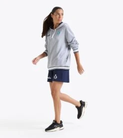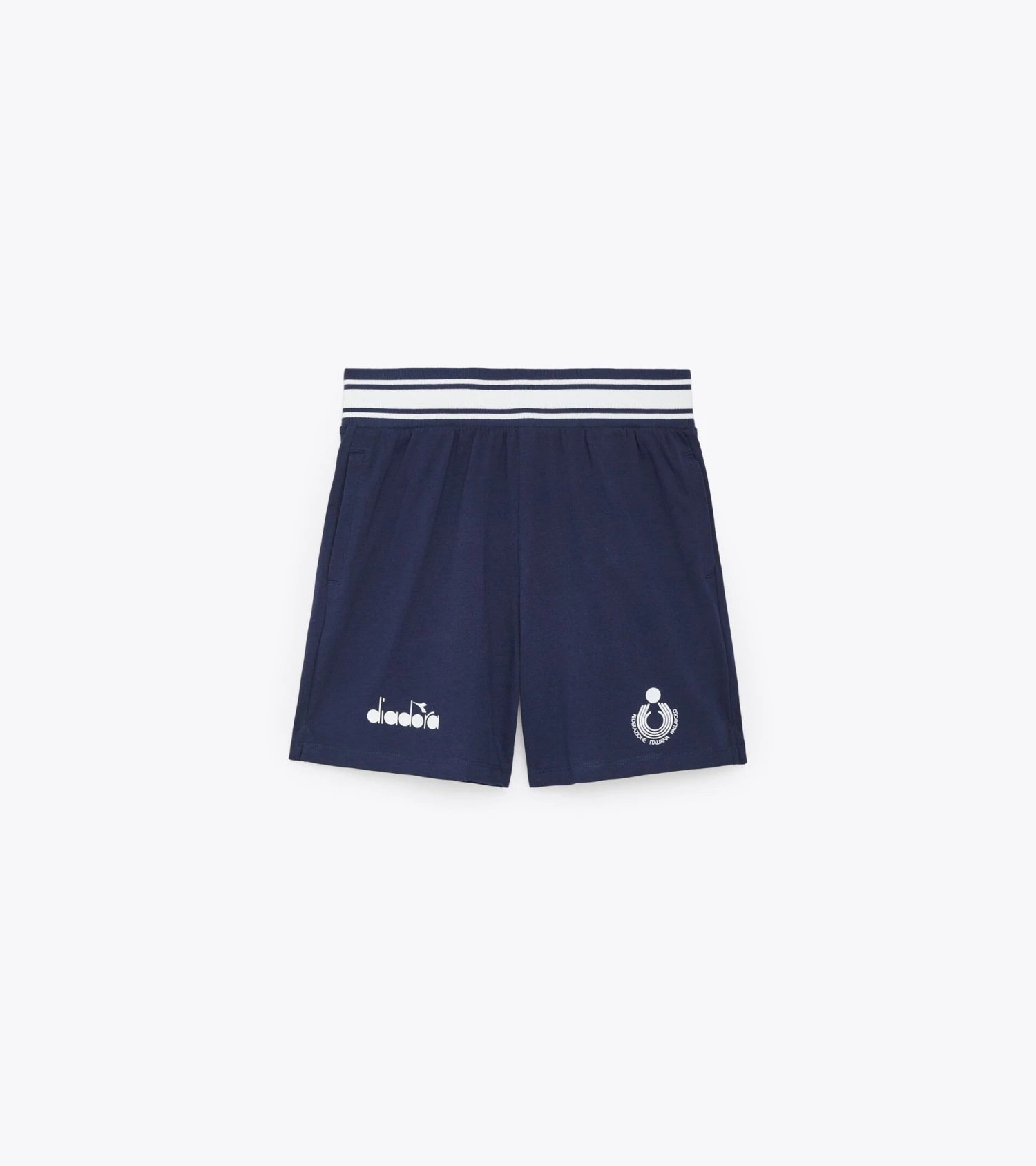 These women’s representative bermuda shorts are perfect for staying comfortable between matches. Made of soft cotton, these shorts feature drawstrings and contrasting laces to adjust the waist for a perfect fit. The right thigh features the logo of the Italian Volleyball Federation, while the left thigh displays the diadora logo.