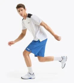 Bermuda shorts made of stretch, microfiber fabric; elastic drawstring waist and inserts made of polyester piquet.