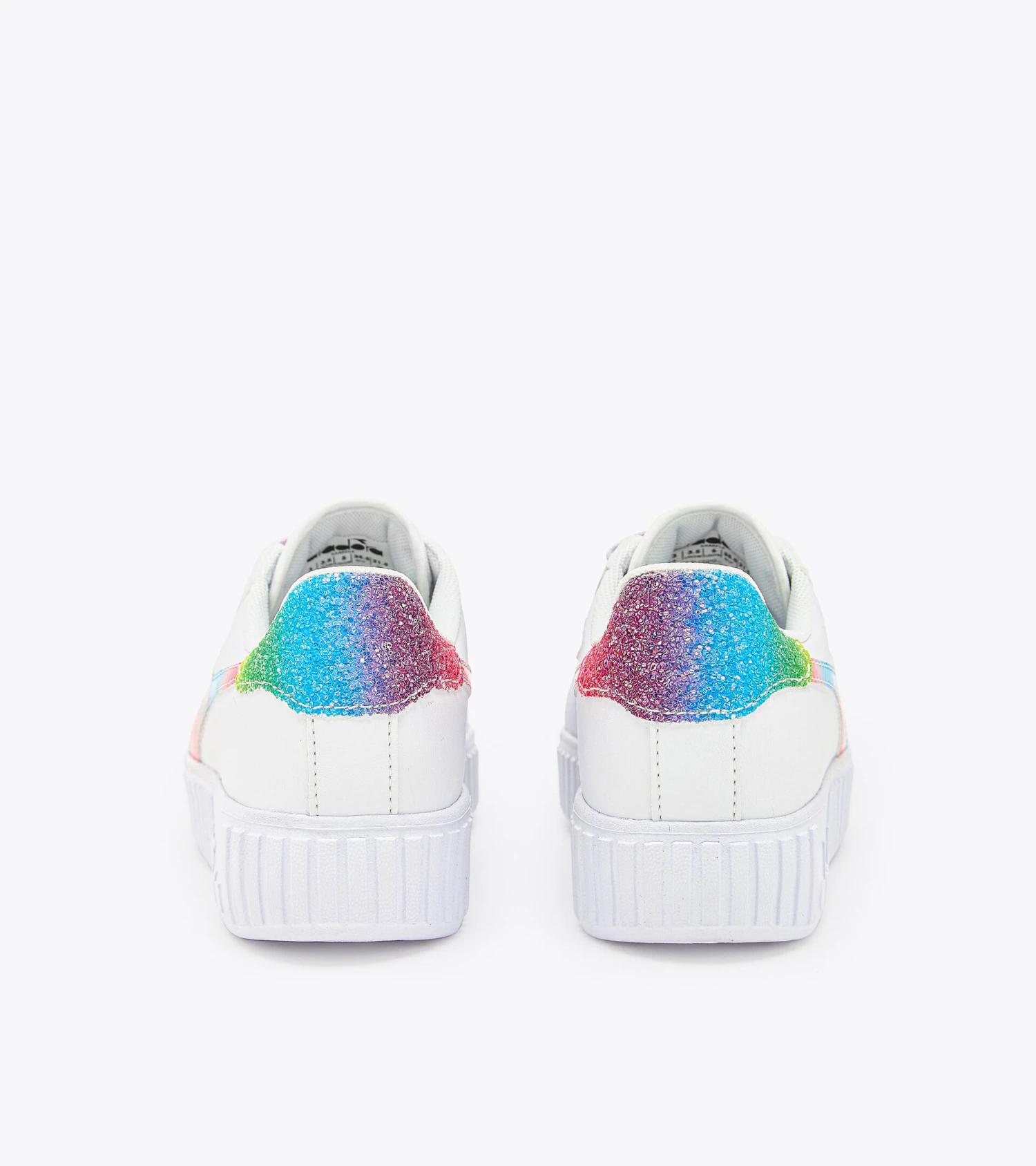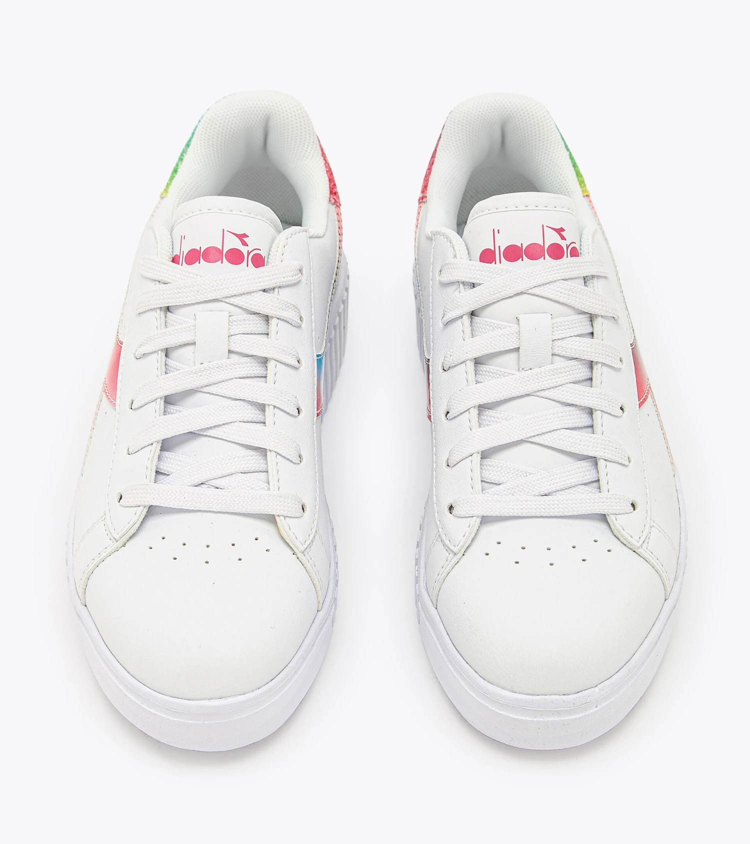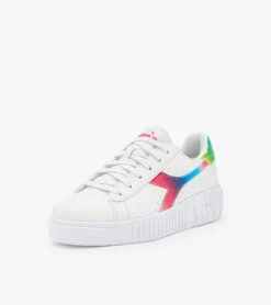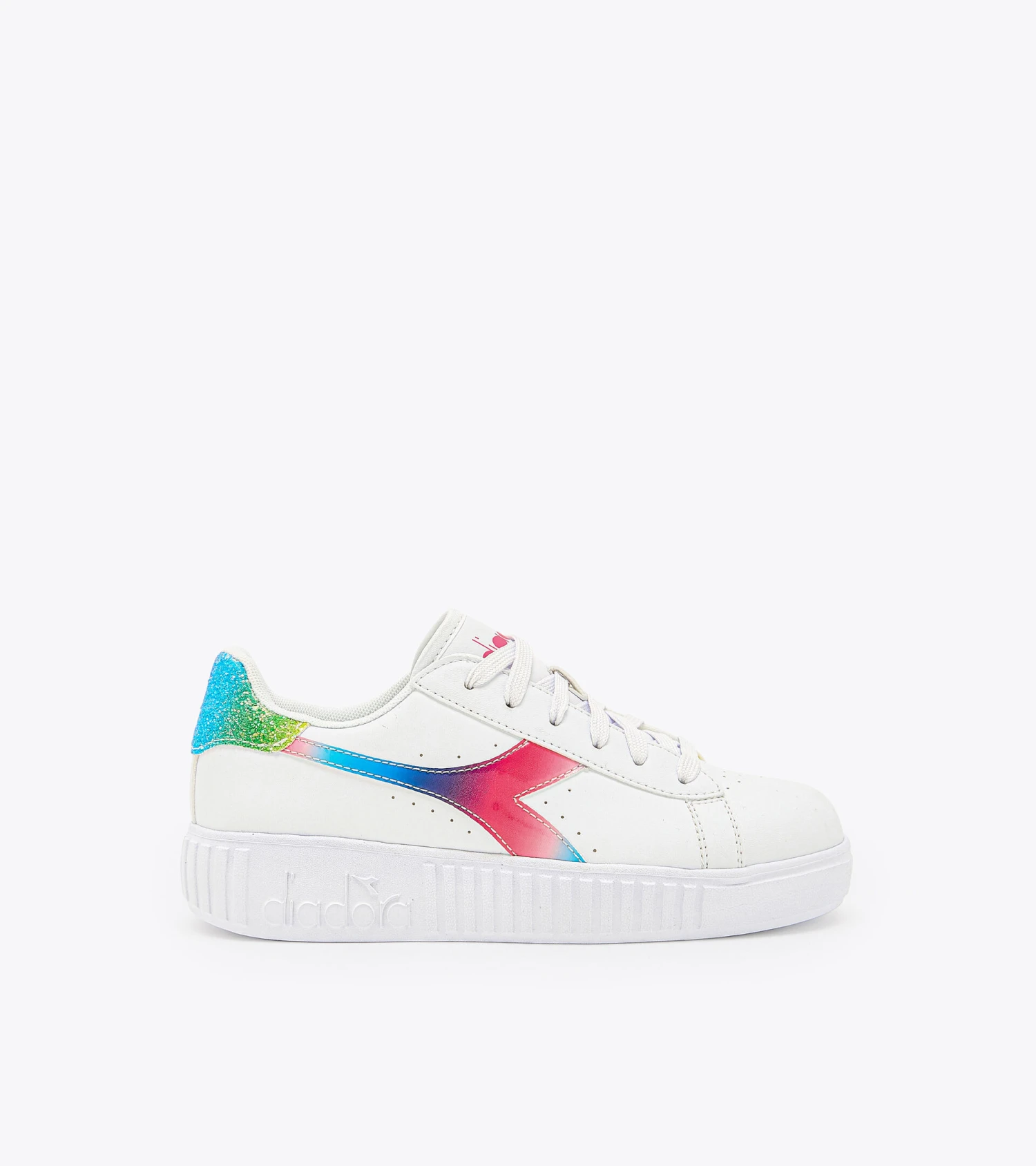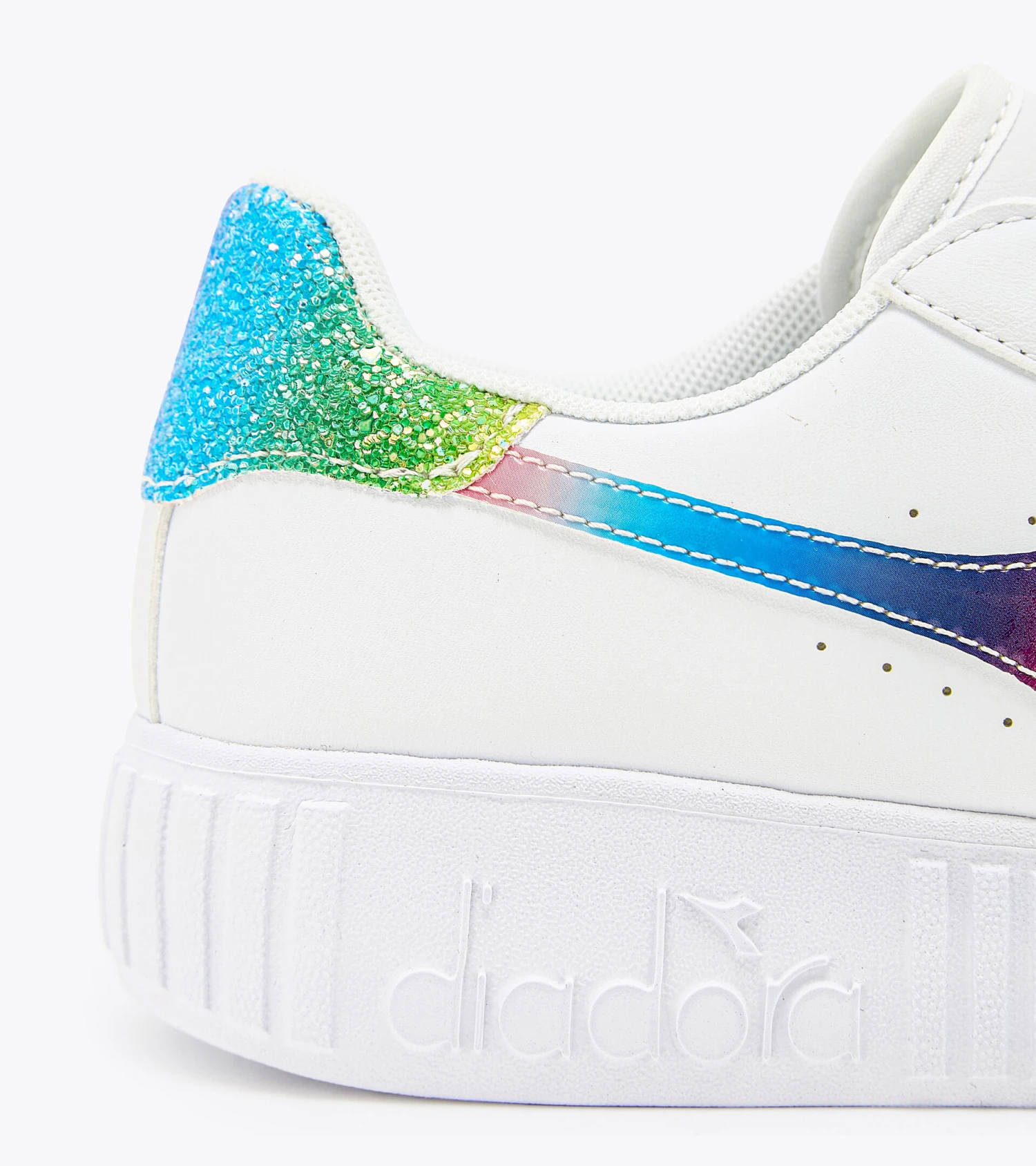 Sporty shoes for teens from 8 to 16 years of age. Reflective, glittered diadora fregio, inspired by rainbow colors.
