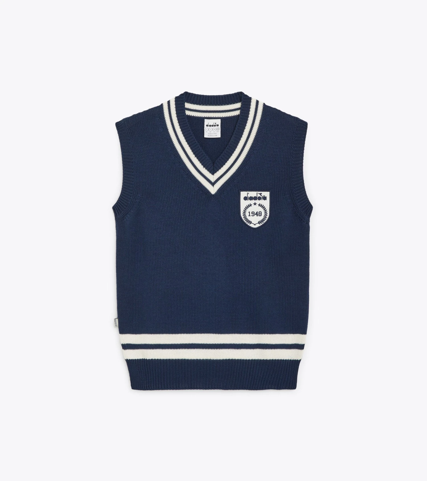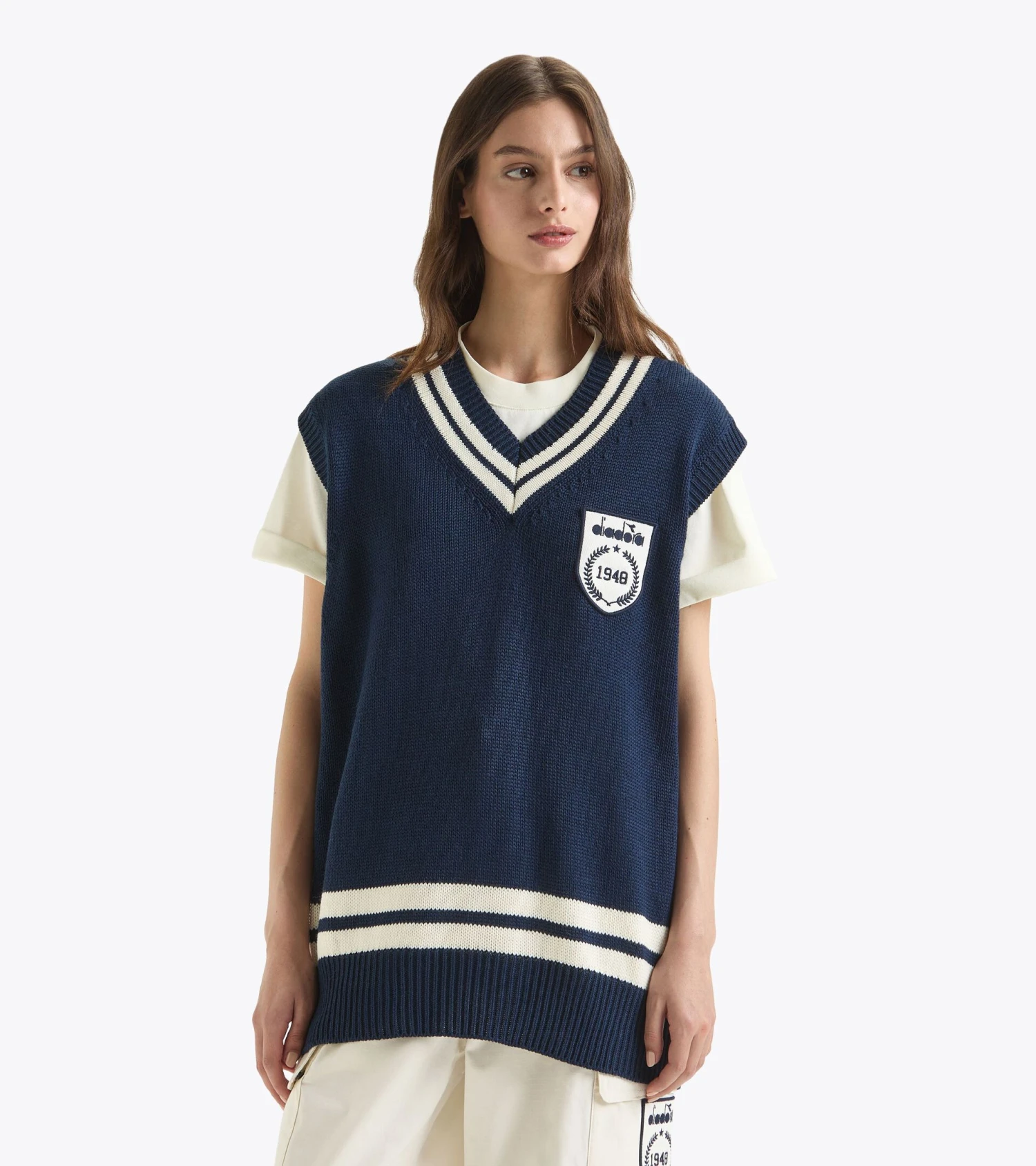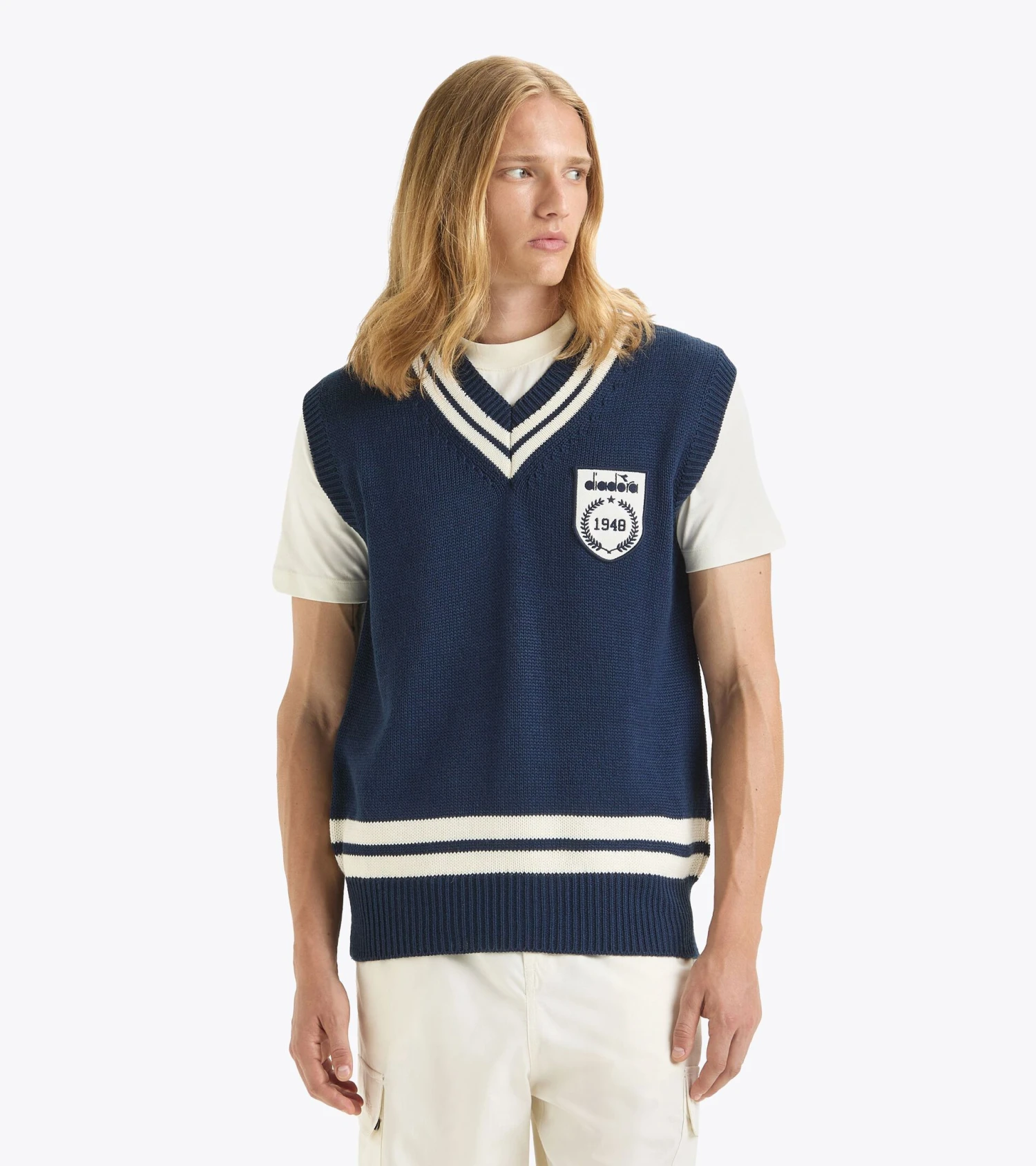 Introducing a timeless sports vest crafted with 50% soft merino wool. Drawing inspiration from diadora’s archival tennis pieces, this vest combines style and functionality effortlessly.