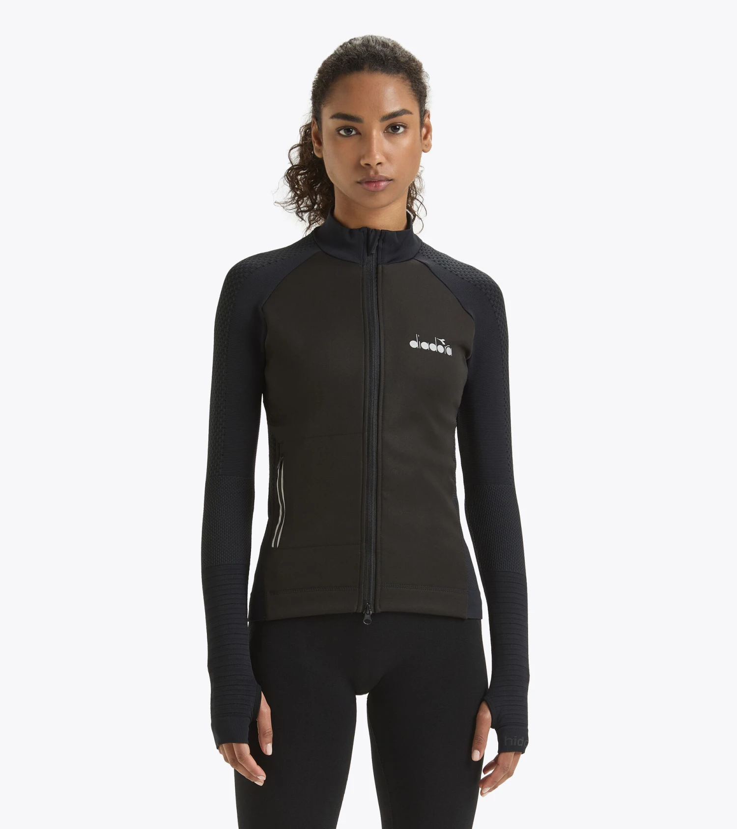 The L. Hidden Power Jacket is the women’s Italian-made full-zip running jacket that comes in a warm polypropylene and polyamide. Front panels in soft, windproof and waterproof 2-layer fabric that is also breathable. Zipped pocket and thumb holes.