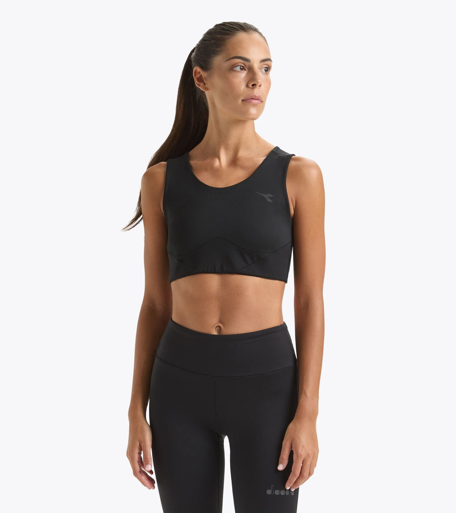 Keep everything in place with this sports bra made from polyamide fabric with honey mesh inserts. An additional mesh panel on the back, combined with the elastic band, enhances breathability and comfort of the bra. Designed to provide optimal support during your workouts, this running top ensures a secure and comfortable fit, allowing you to focus on your performance.