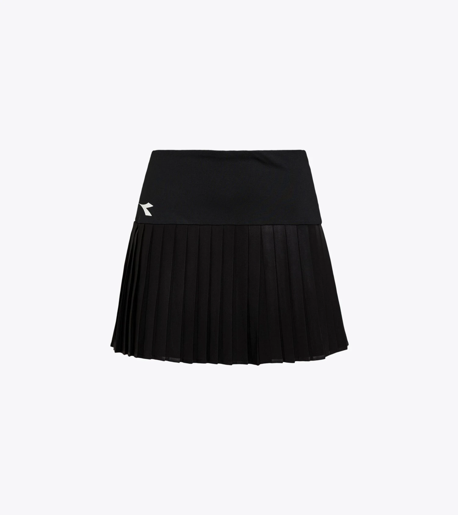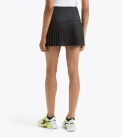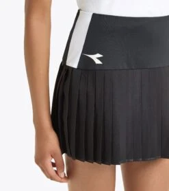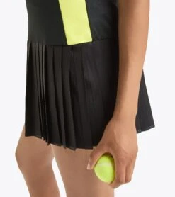 Retro-inspired tennis skirt made of microfiber, with a pleated finish and contrasting inserts on the waistband. The briefs underneath feature ball pockets at the sides. The logo design complies the international tournament regulation. To win in style.