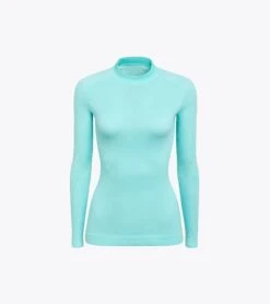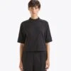 Women’s boxy fit sweatshirt featuring a squared design. The asymmetric pleats on the sleeves and ribbed finishes on the edges add a subtle yet undeniably stylish touch. Meticulously crafted with attention to detail, this women’s crewneck sweatshirt combines comfort with a contemporary aesthetic, offering a sporty and fashionable look. V-neckline on the back.