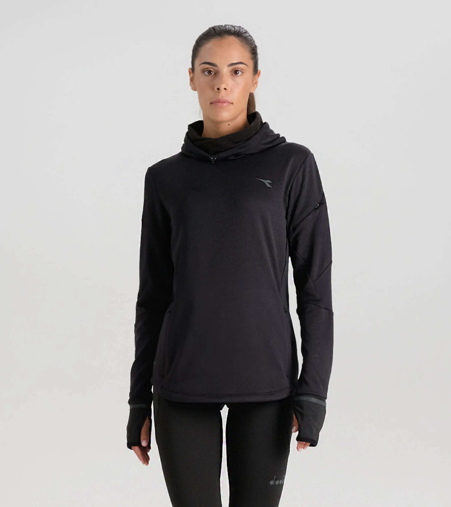 The brushed interior adds an extra layer of protection, while the high collar with a drawstring, hood, and thumbholes will be your allies against the wind.