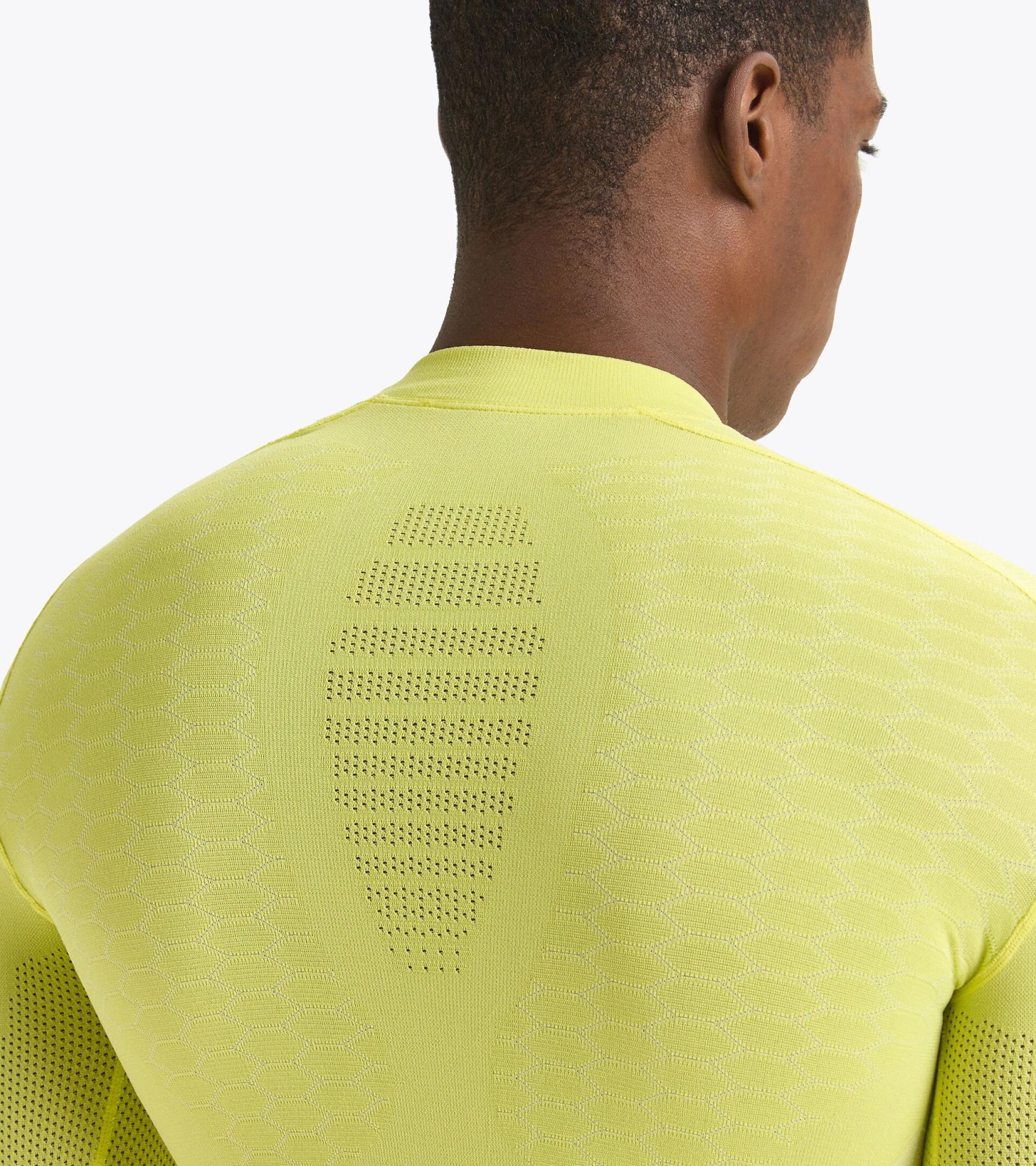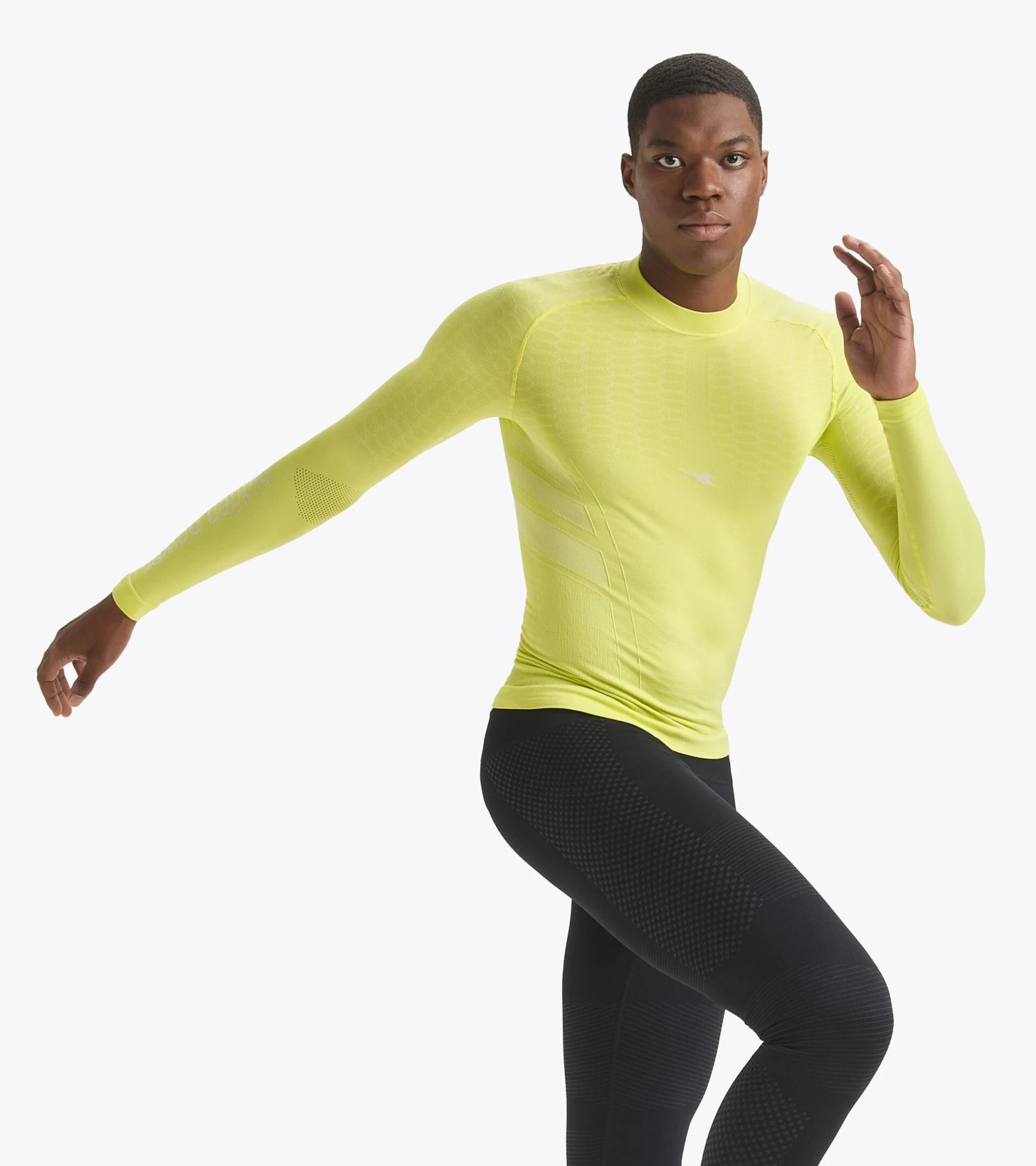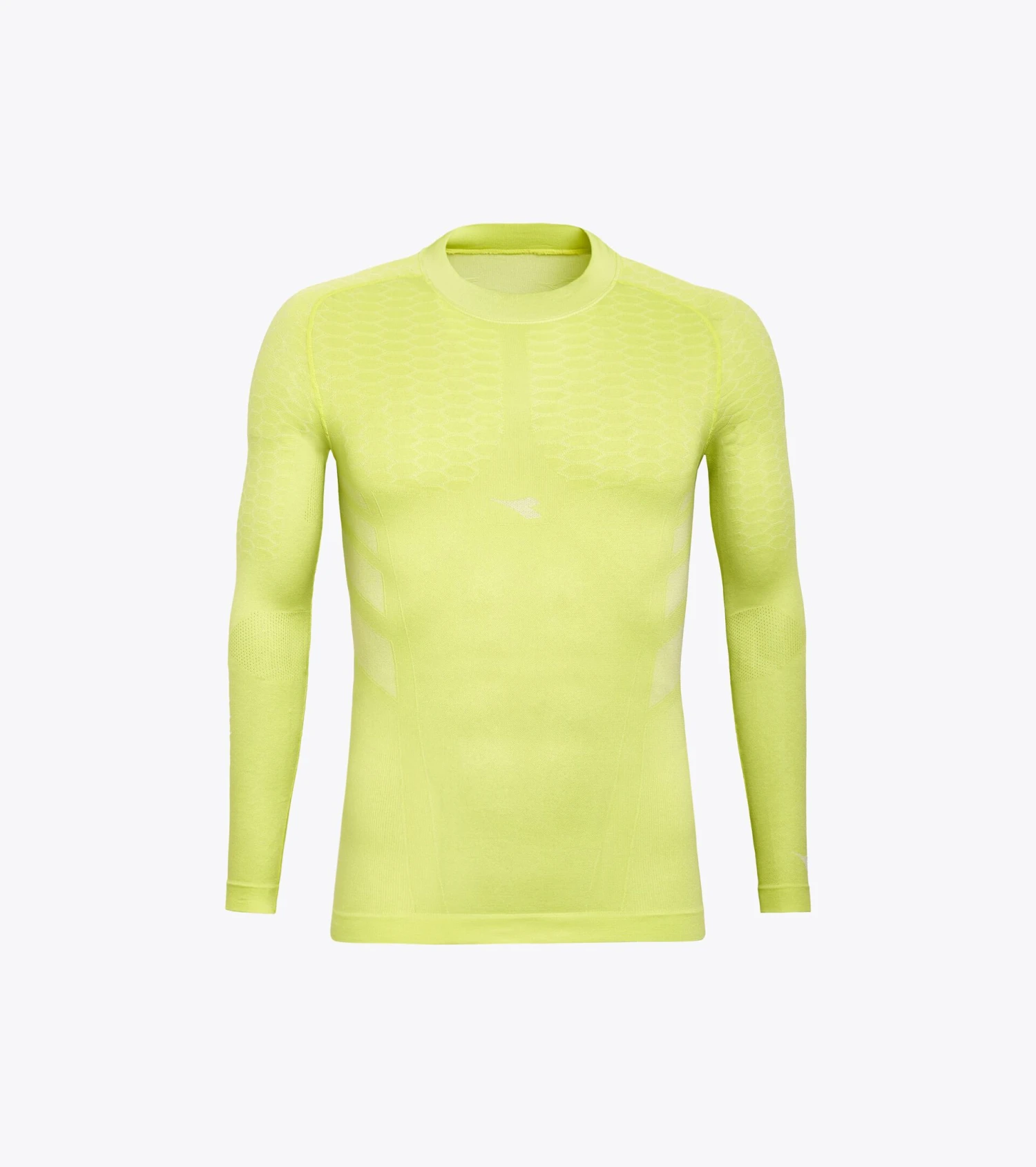 A long-sleeved polo neck shirt in a soft, lightweight blend of polyamide and polypropylene. The latter – tone-on-tone – has the dual function of keeping the body dry and highlighting the logos.