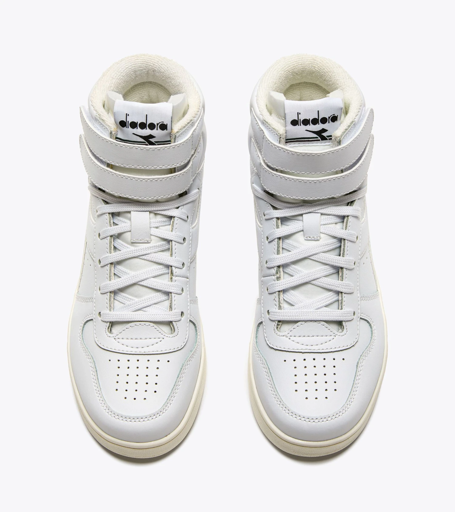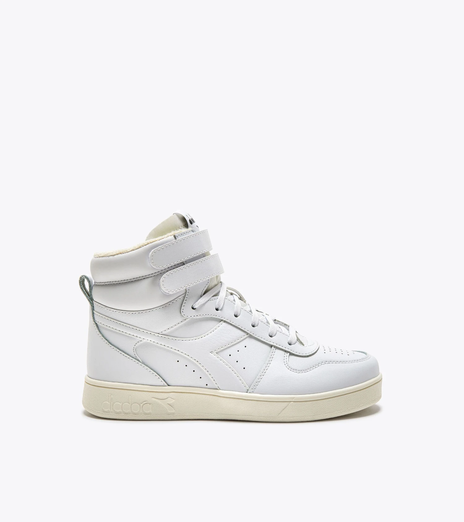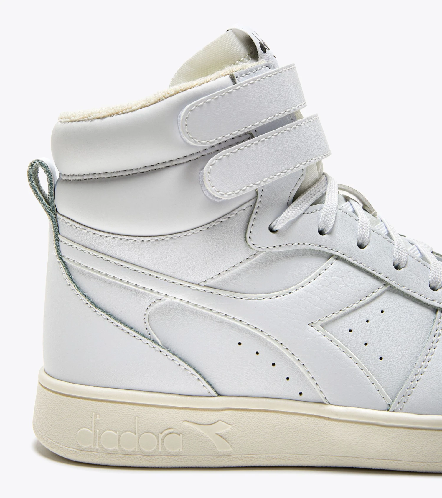 An iconic trainer from diadora, the Magic is straight out of the basketball section of our 1985 catalogue. Created as the evolution of the MI Basket, with a calfskin upper, shock-absorbing midsole and insole and special velcro strap on the high-top.