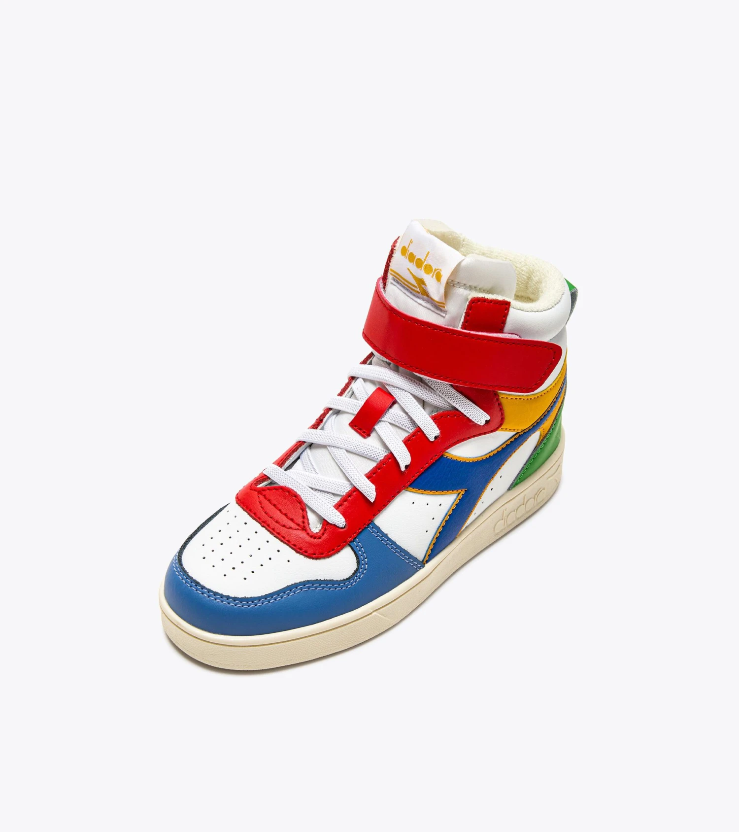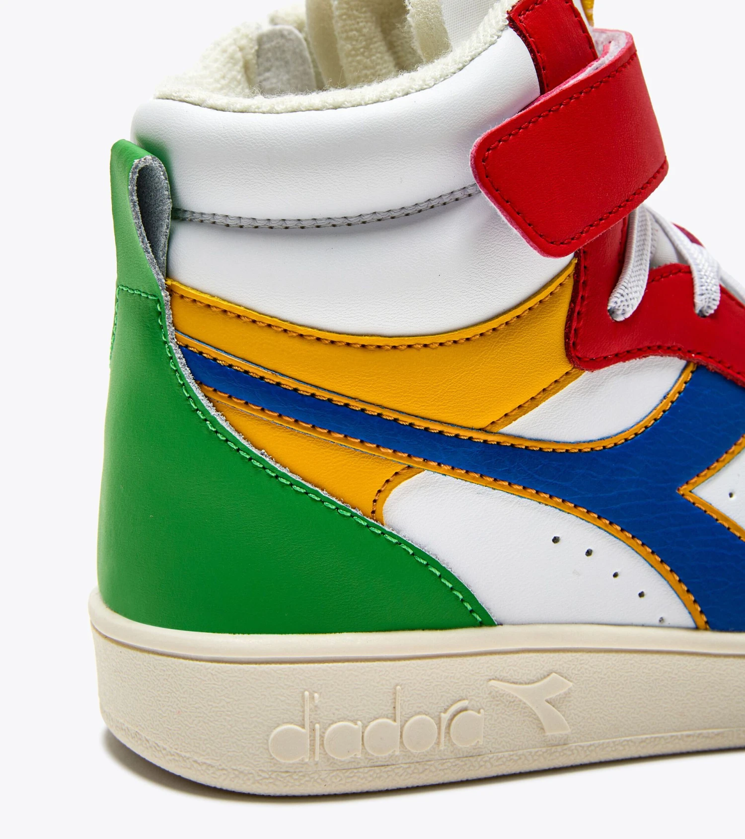 An iconic trainer from diadora, the Magic is straight out of the basketball section of our 1985 catalogue. Created as the evolution of the MI Basket, with a calfskin upper, shock-absorbing midsole and insole and special velcro strap on the high-top.