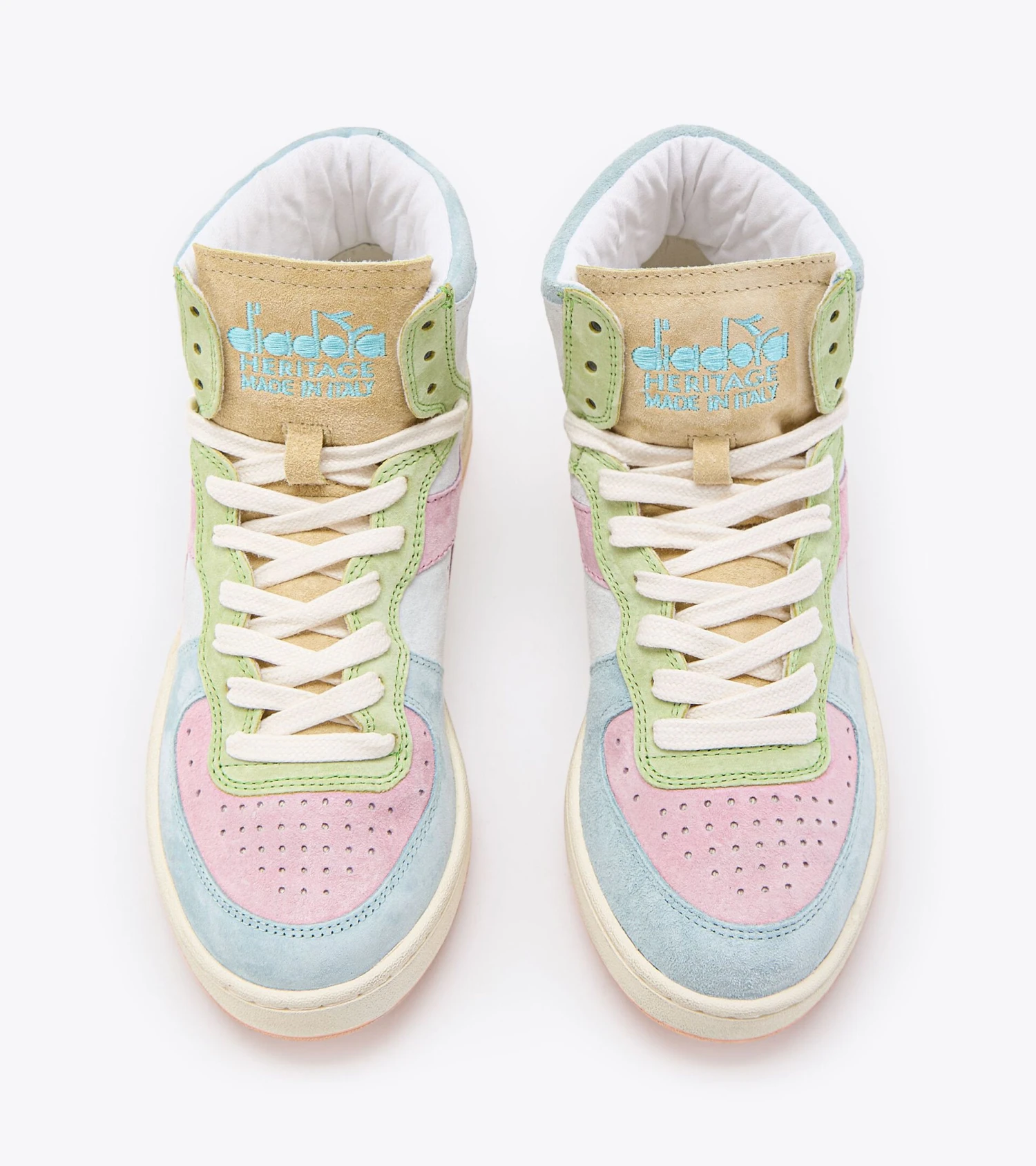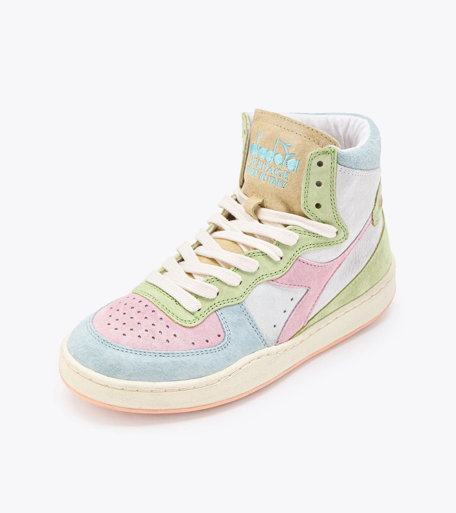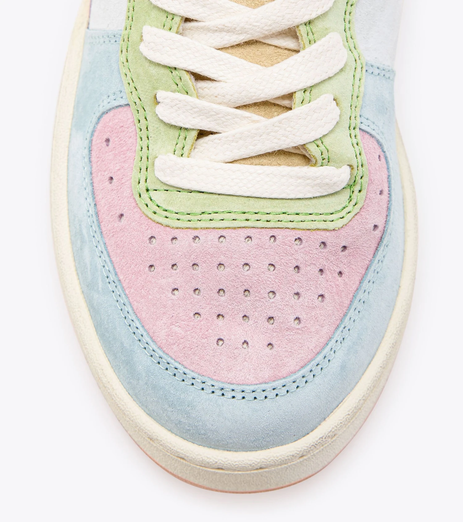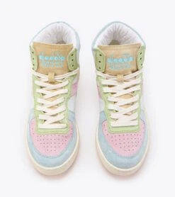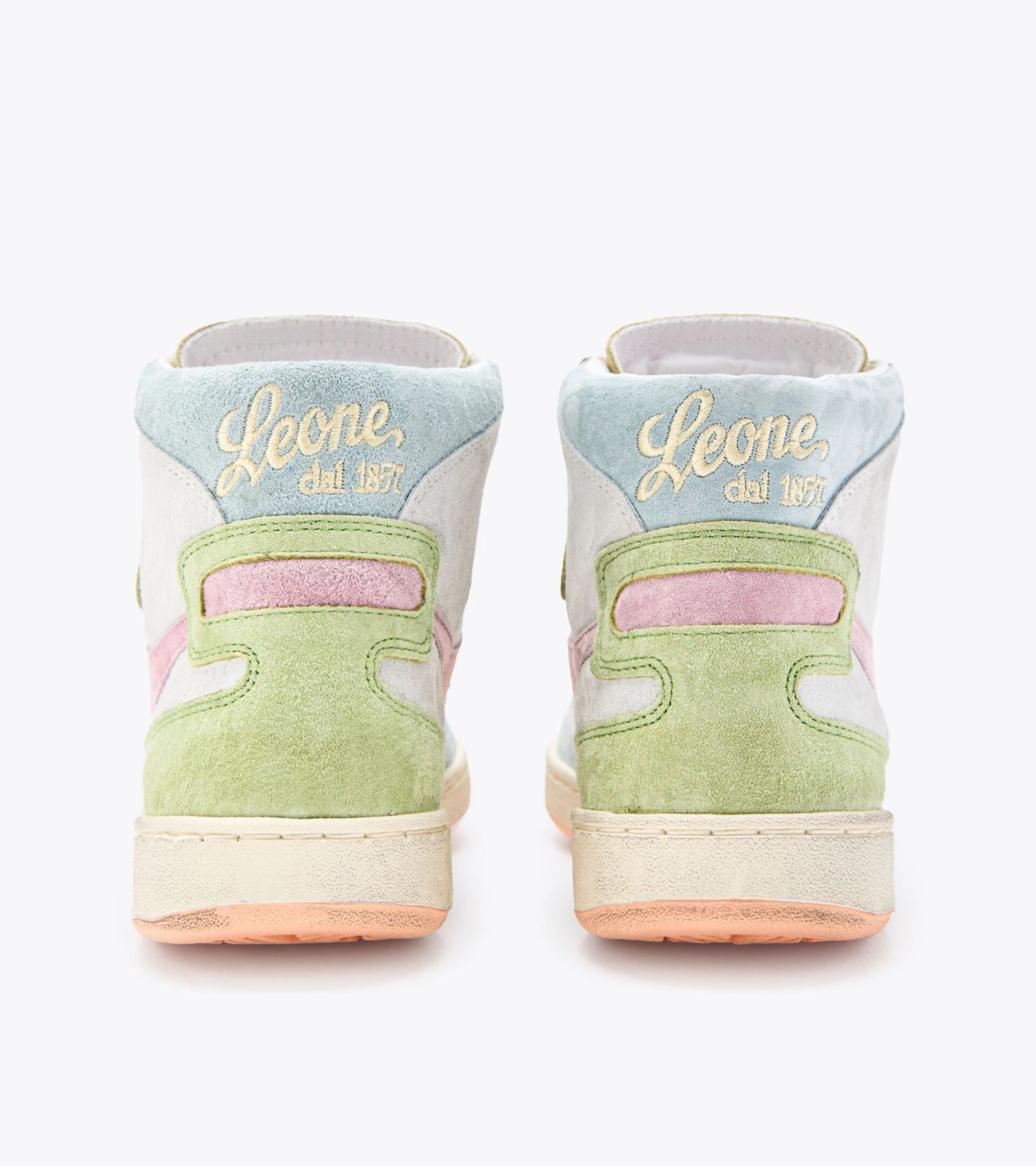 MI Basket Arcobaleno Italia comes from the collab between diadora and Pastiglie Leone, a very special Italian candy manufacturer. Rainbow shades inspired, this sneaker is made with premium pigskin leather, stone washed and waxed, for a worn yet polish finish.