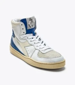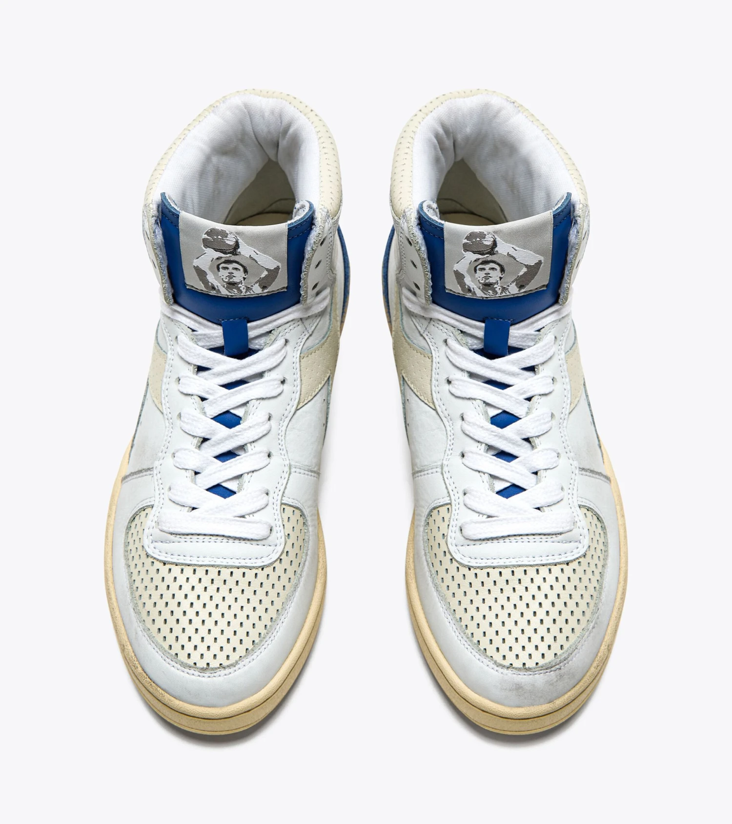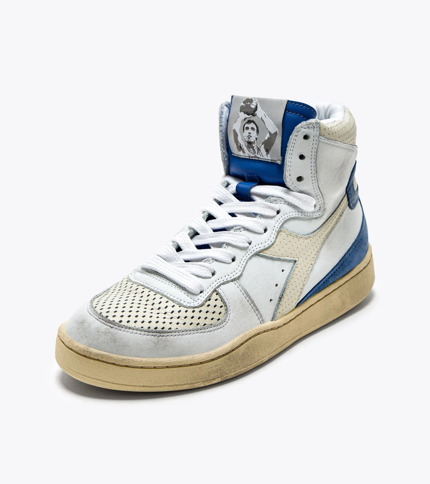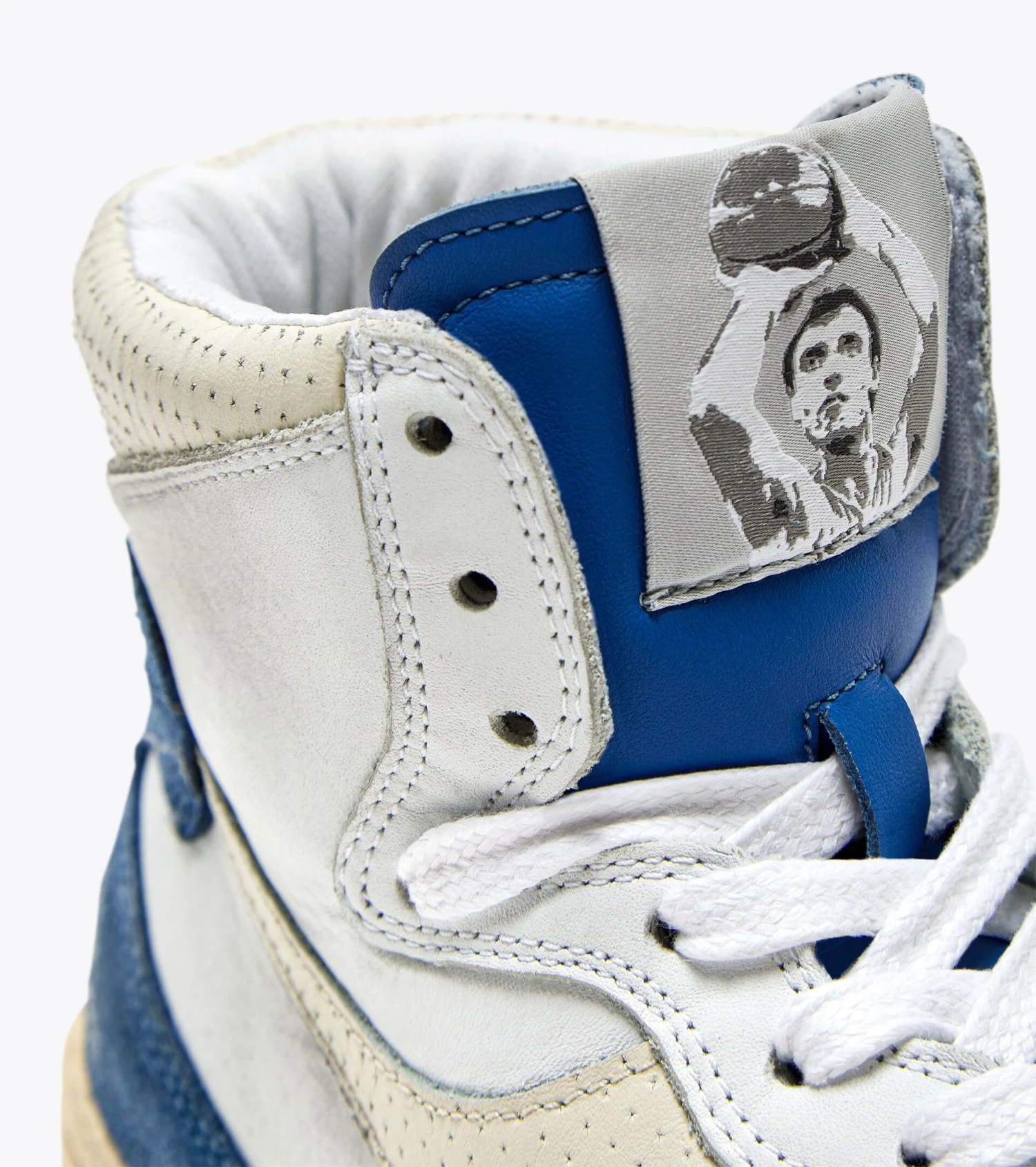 Immerse yourself in the world of retro basketball with these high-top sneakers. Every detail pays homage to the sport: the perforations on the upper recall the iconic pattern of basketball jerseys, while the color palette takes inspiration from the historic jerseys of that era. The MI Basket Punched Italia is a Made In Italy shoe, meticulously crafted from premium full-grain leather with accents of hairy suede. The signature stonewash treatment and waxing are the hallmarks of diadora’s MI Basket collection. Complete with a stylized Dino Meneghin on the tongue, this shoe truly stands out.