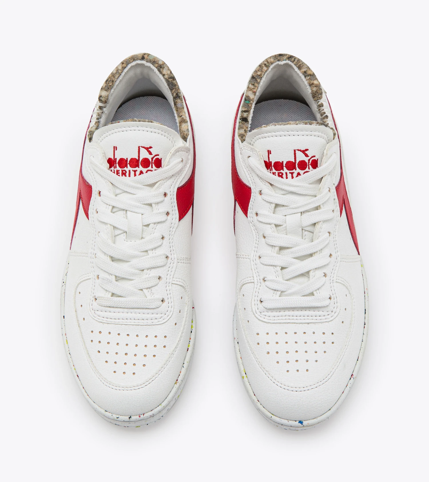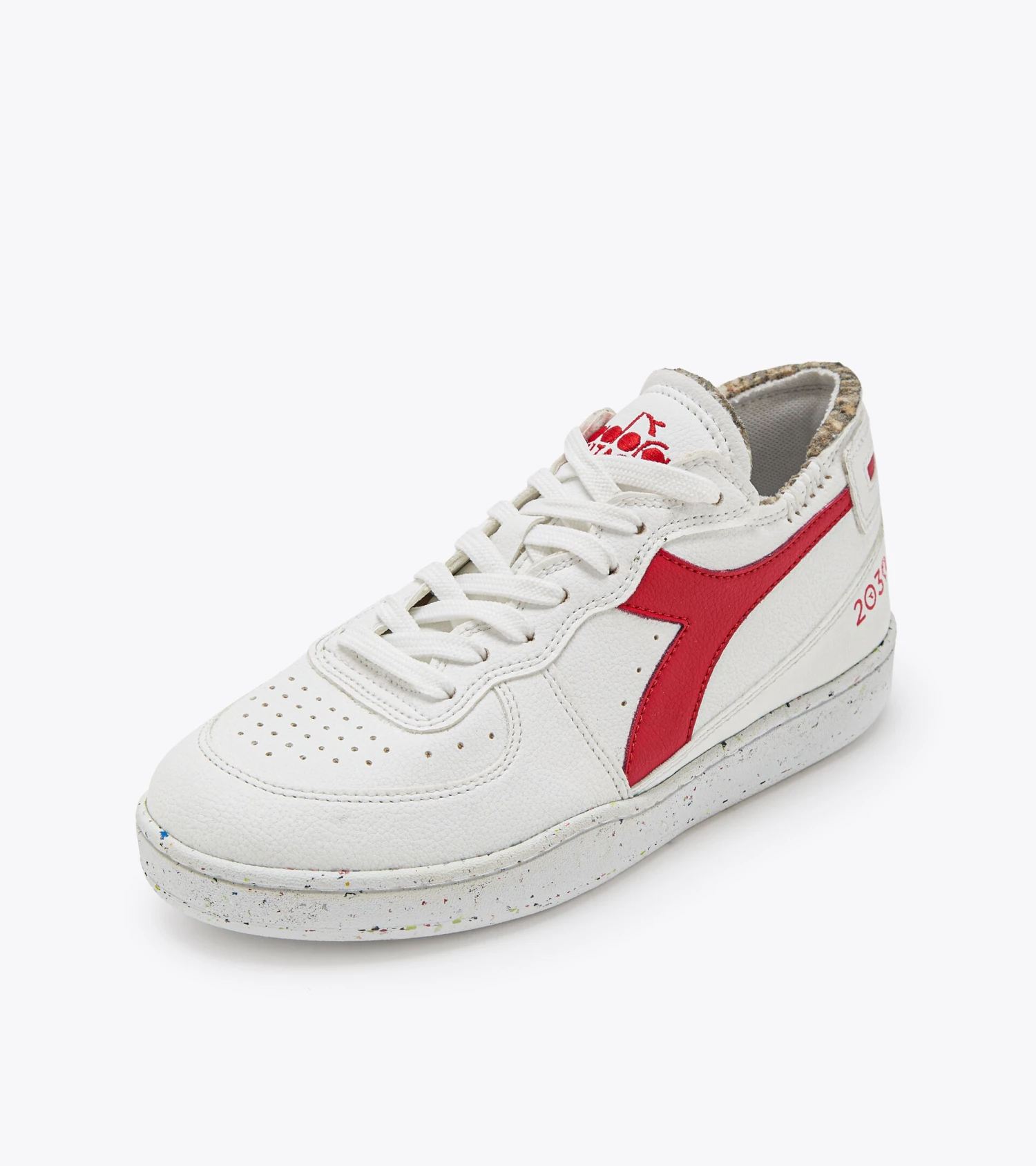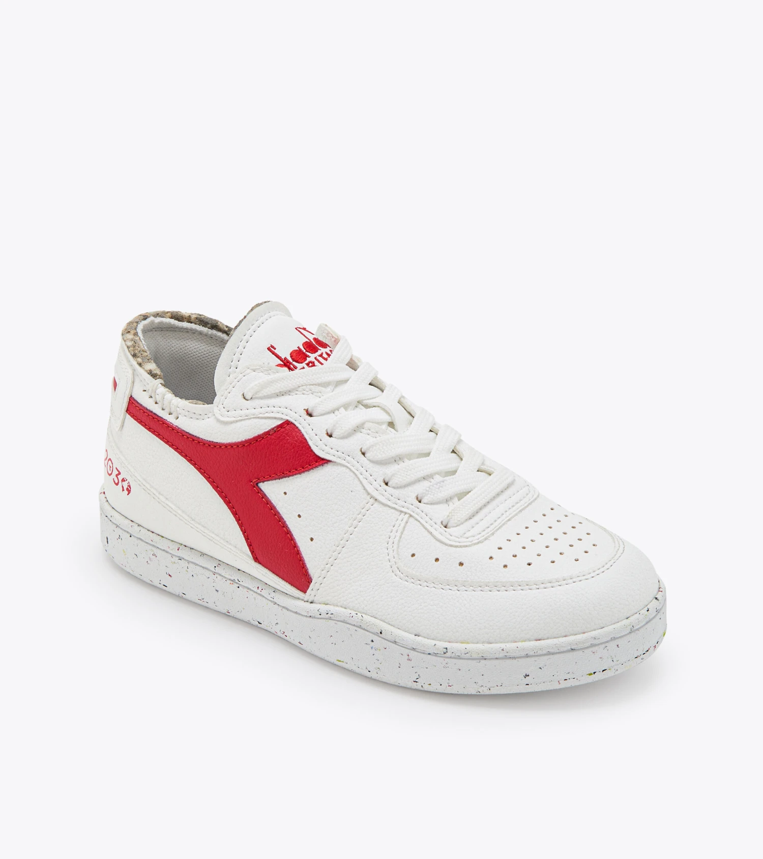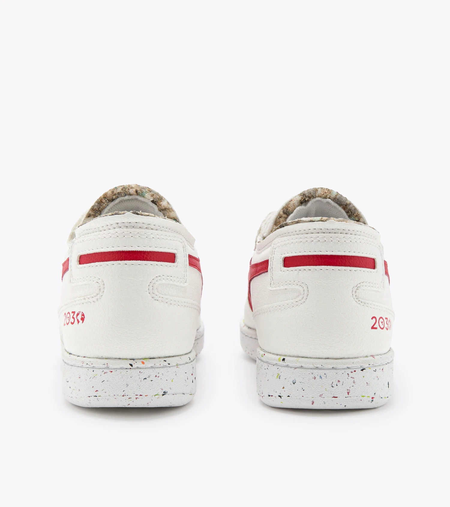 The MI Basket Row Cut 2030 is the environmentally-friendly edition of this iconic diadora style. This special edition is part of diadora’s 2030 project. Designed to be a pillar of the brand, the MI Basket Row Cut 2030 includes GRS or RCS-certified materials. 33% of its weight is made up of recycled synthetic materials and 11% of an innovative bio-based polyurethane with a water-based formulation, manufactured from fibres and oils derived from waste from wine and sugar cane processing, which are then transformed in order to optimise resources.