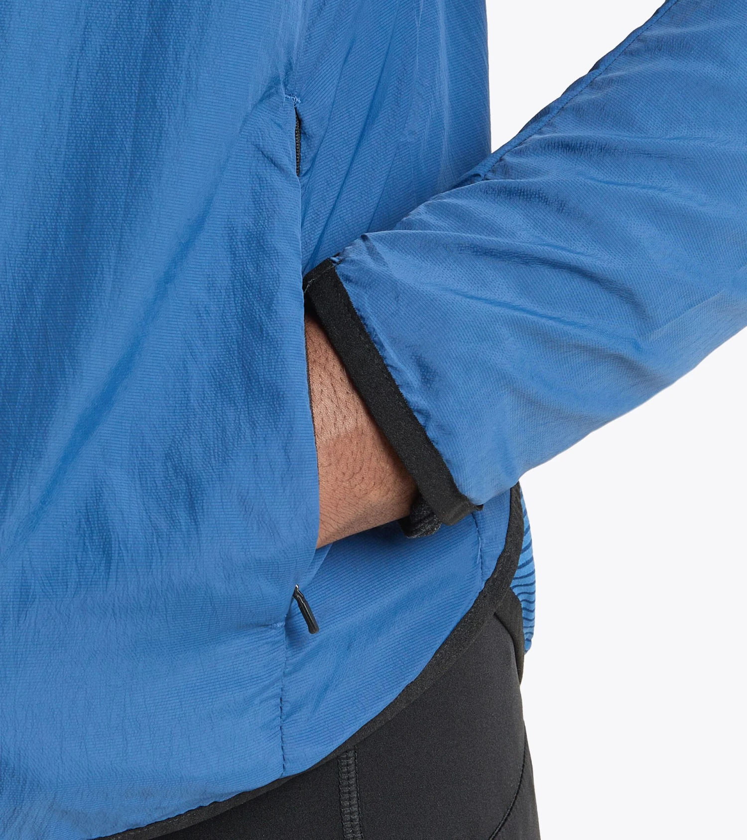 How many times have you found yourself going for a run under a cloudy sky, only to see the sun come out halfway through your workout? With this set comprising a windproof jacket and a long-sleeve t-shirt, you’ll be ready for whatever the weather brings. Simply fold the jacket into the back pocket of the shirt and continue your run without any interruptions. And with the added reflective details, you can even venture out for a refreshing night run!