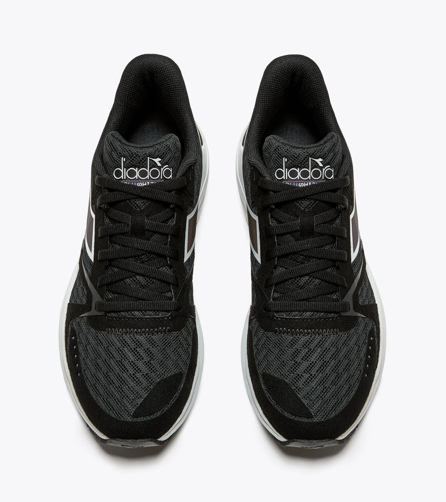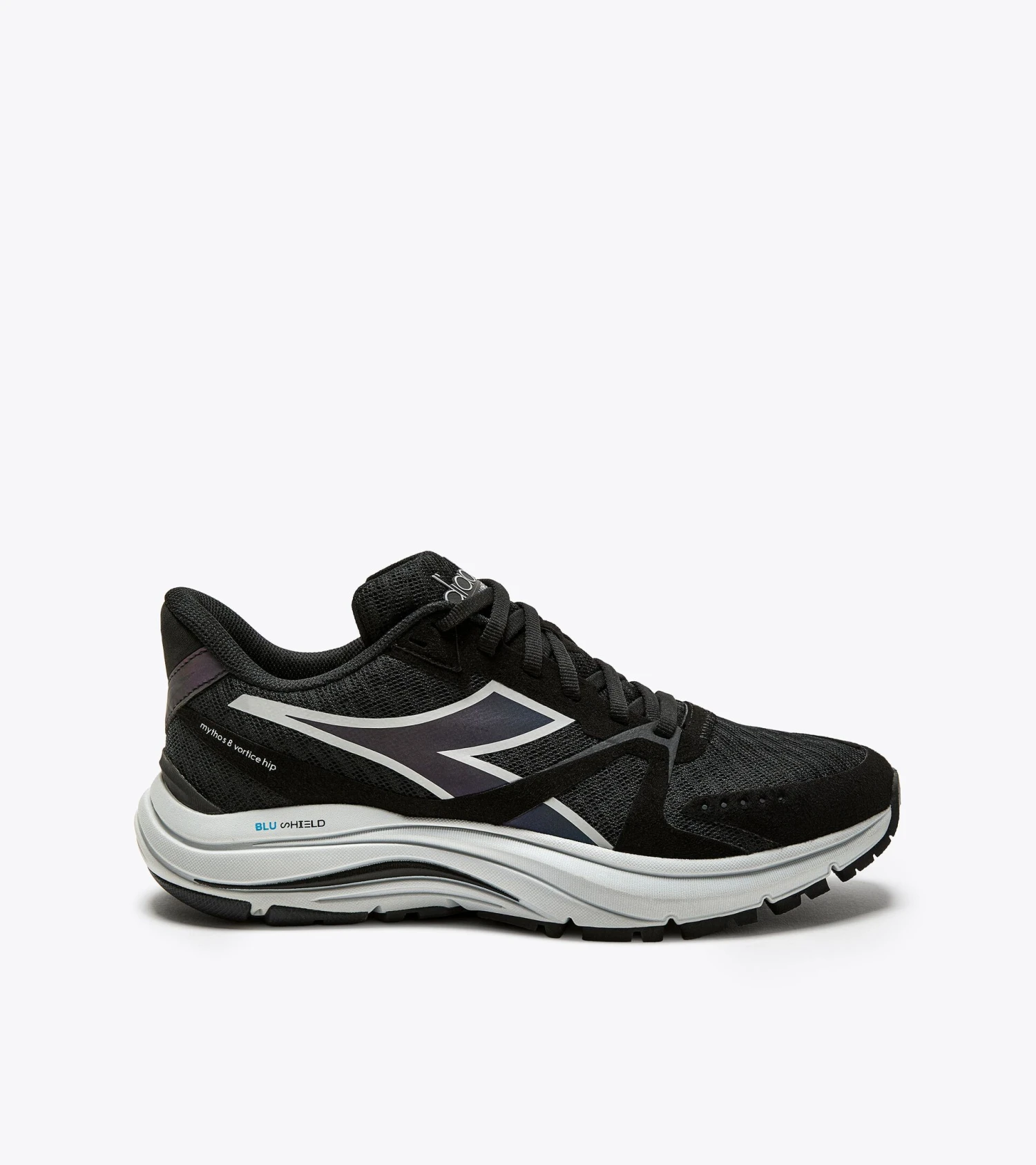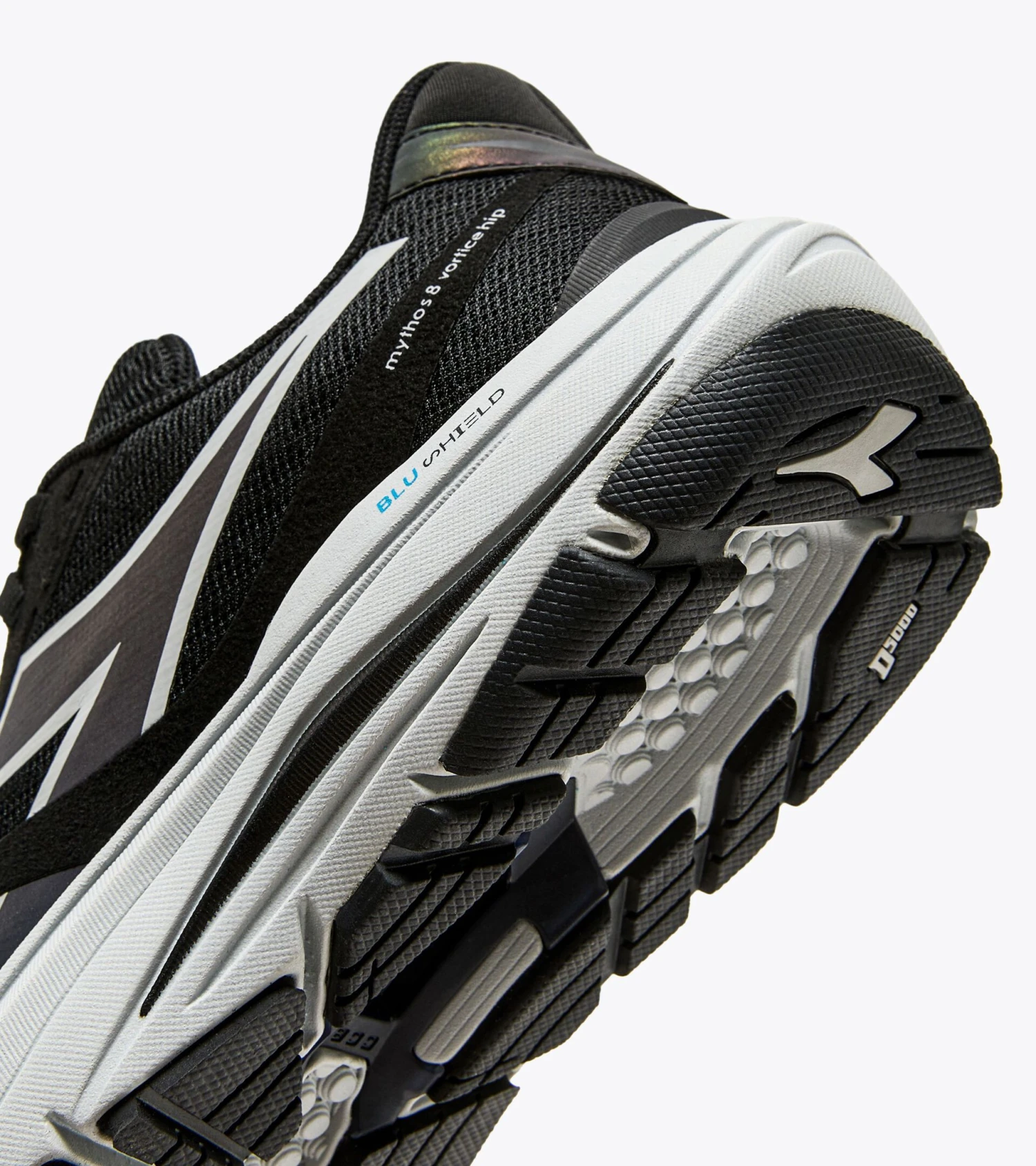 Mythos Blushield 8 Vortice Hip W are women running shoes made of air mesh nylon upper, insole of elaston EVA. Midsole of light EVA with Blushield technology all over the foot area; outsole of blown flexoft at the front, wear-resistant Duratech 5000 compound at the heel.