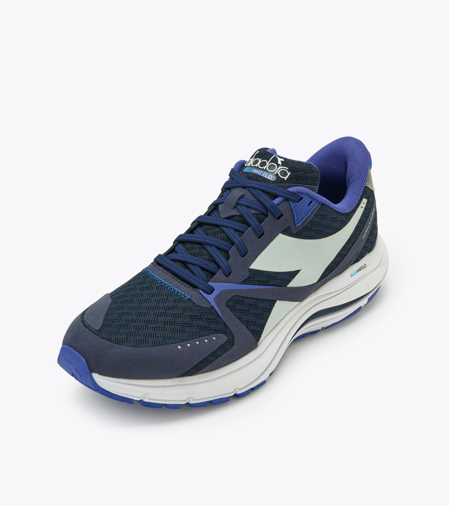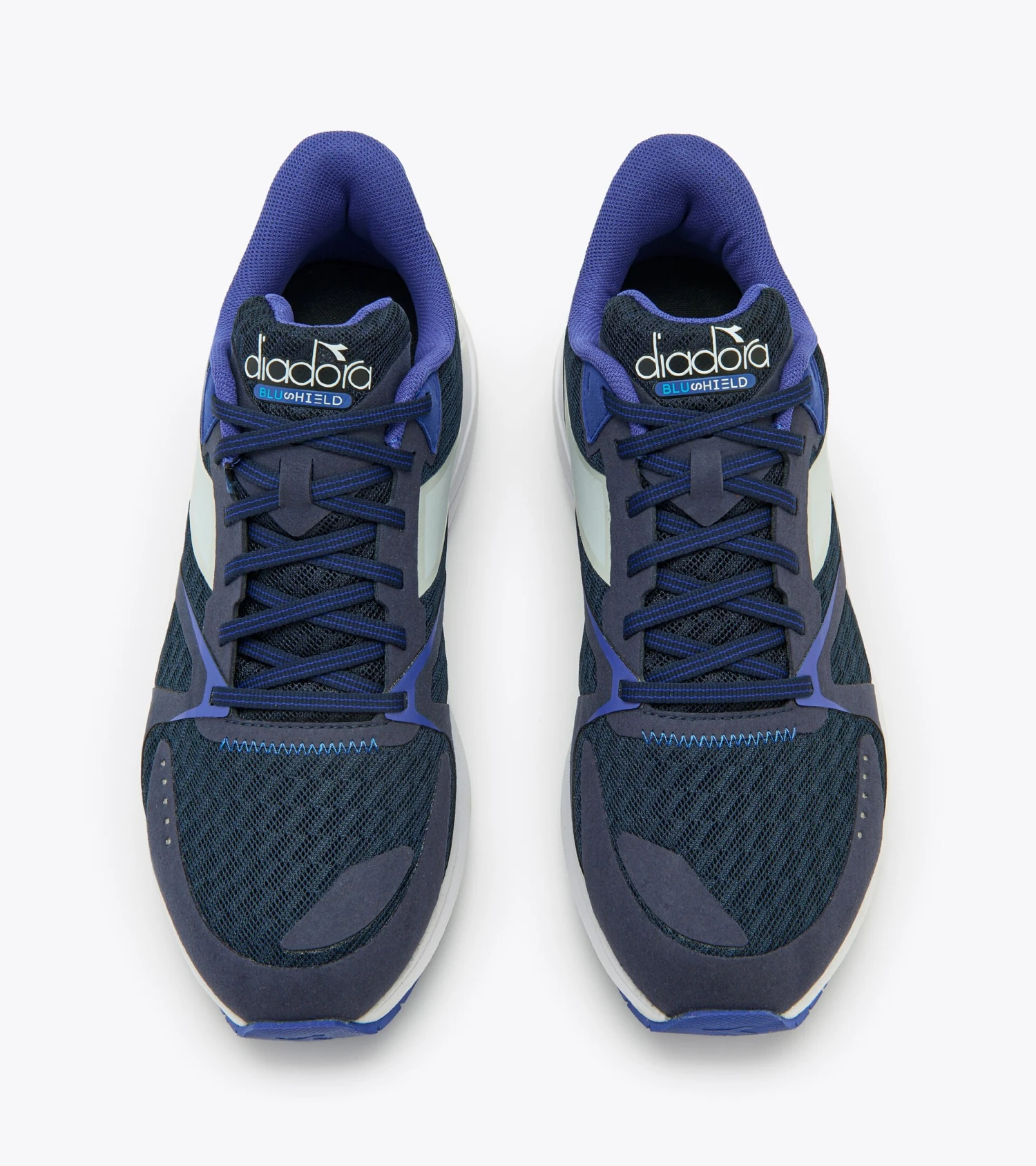 Mythos Blushield 8 Vortice Wide are men running shoes made of air mesh nylon upper, insole of elaston EVA. Midsole of light EVA with Blushield technology all over the foot area; outsole of blown flexoft at the front, wear-resistant Duratech 5000 compound at the heel. Wide fit.
