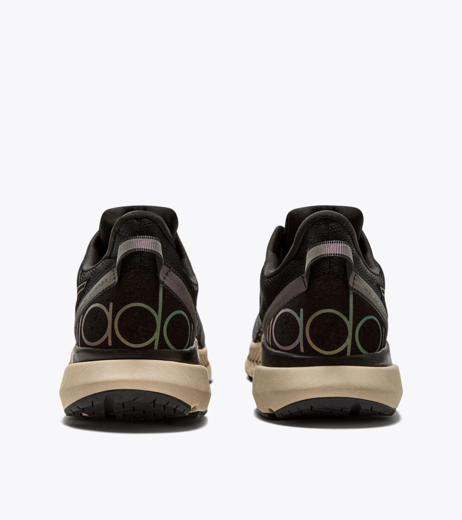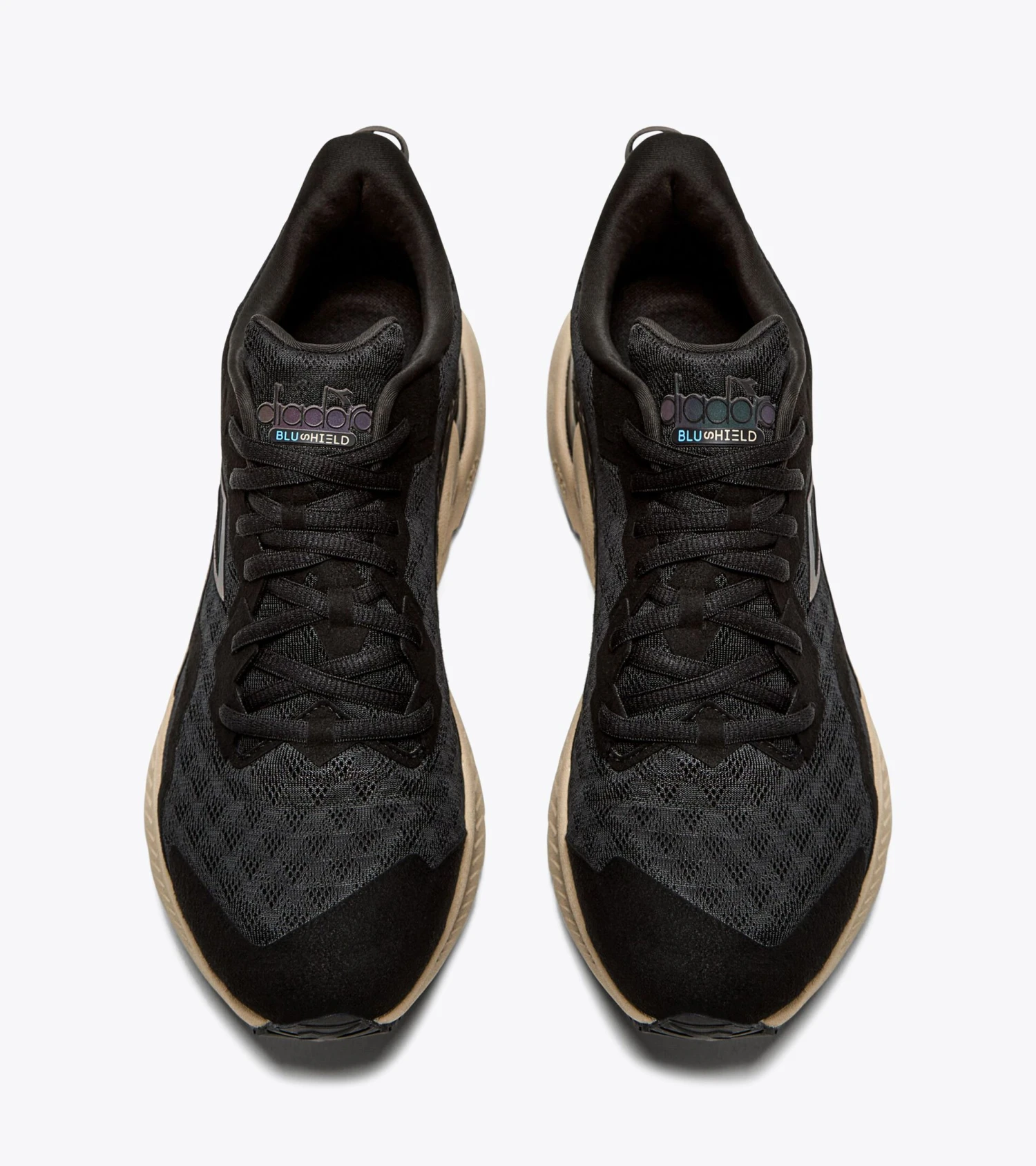Air mesh nylon upper, suede/PU transfer insert; insole of elaston EVA. Midsole made with DD anima compound and Blushield technology all over the foot area; outsole of blown flexoft at the front, wear-resistant Duratech 5000 compound at the heel