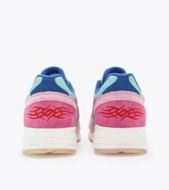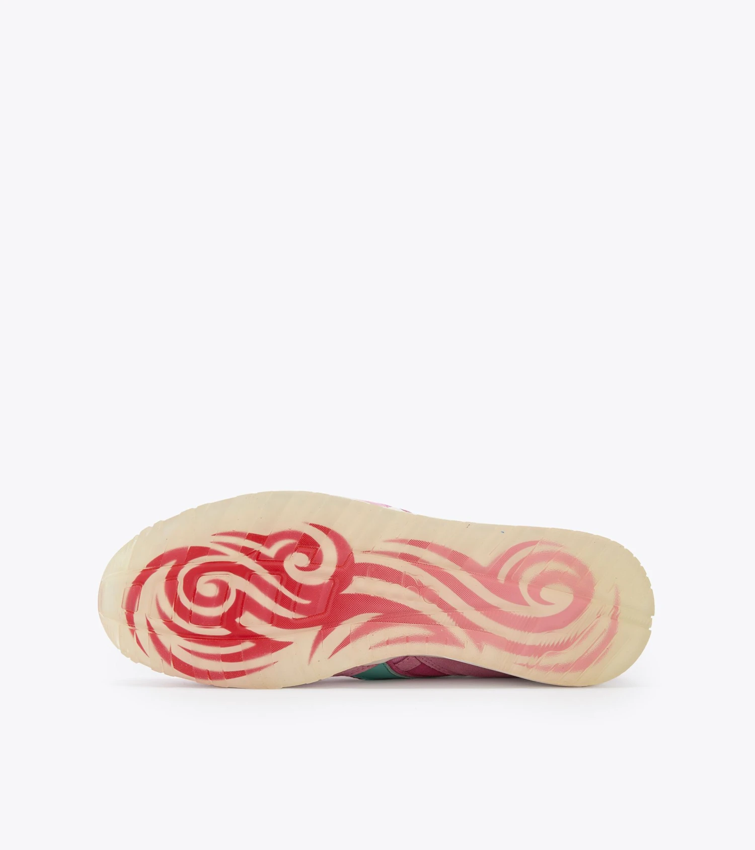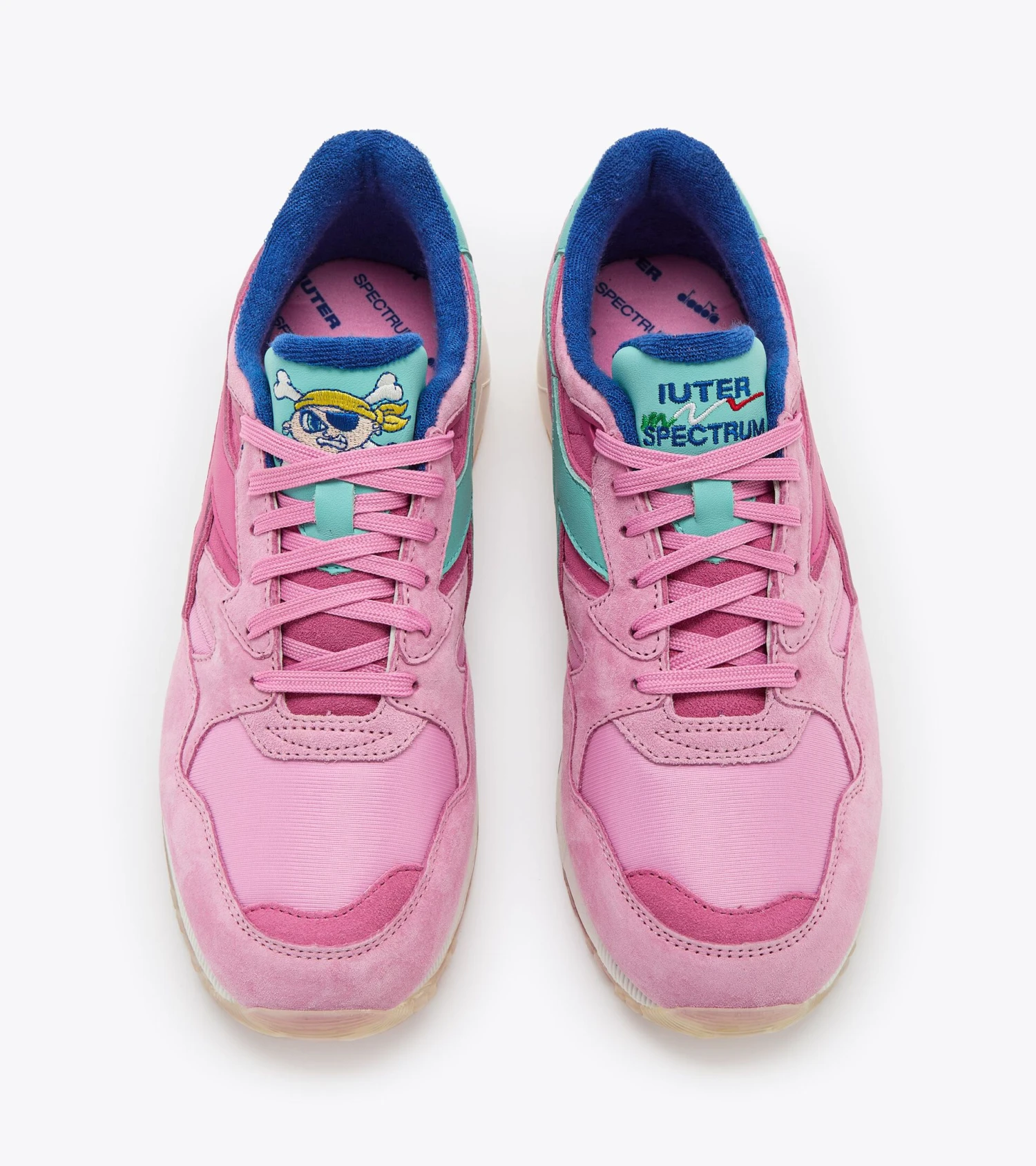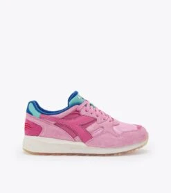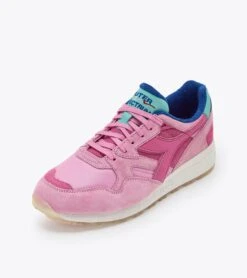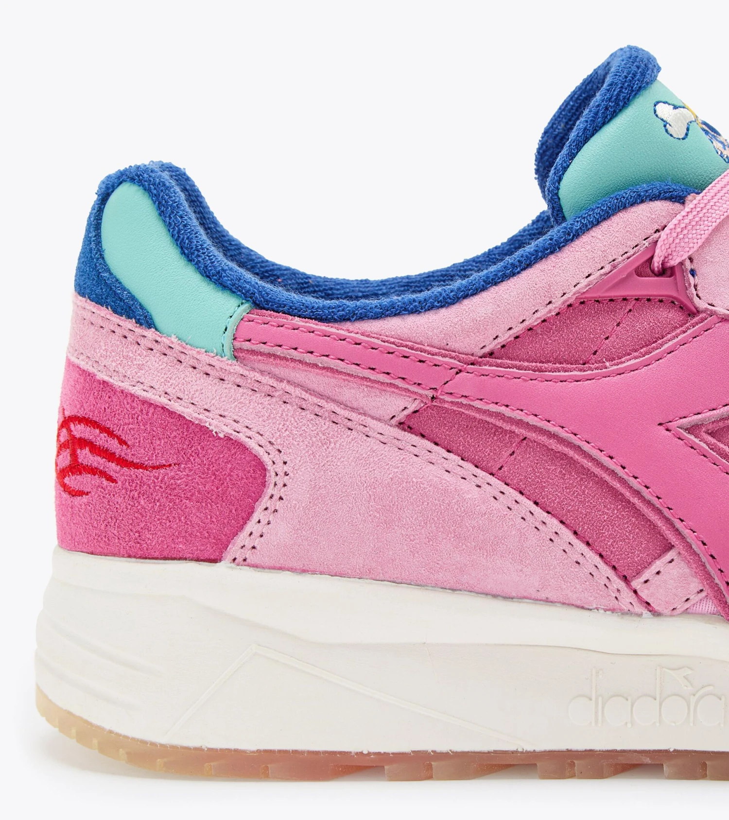 Almost entirely pink, the diadora frieze is in blue and the inner lining – with a padded lining for maximum comfort – is in blue. The midsole is in shock-absorbing EVA, while the transparent sole reveals the print that is also repeated on the heel.