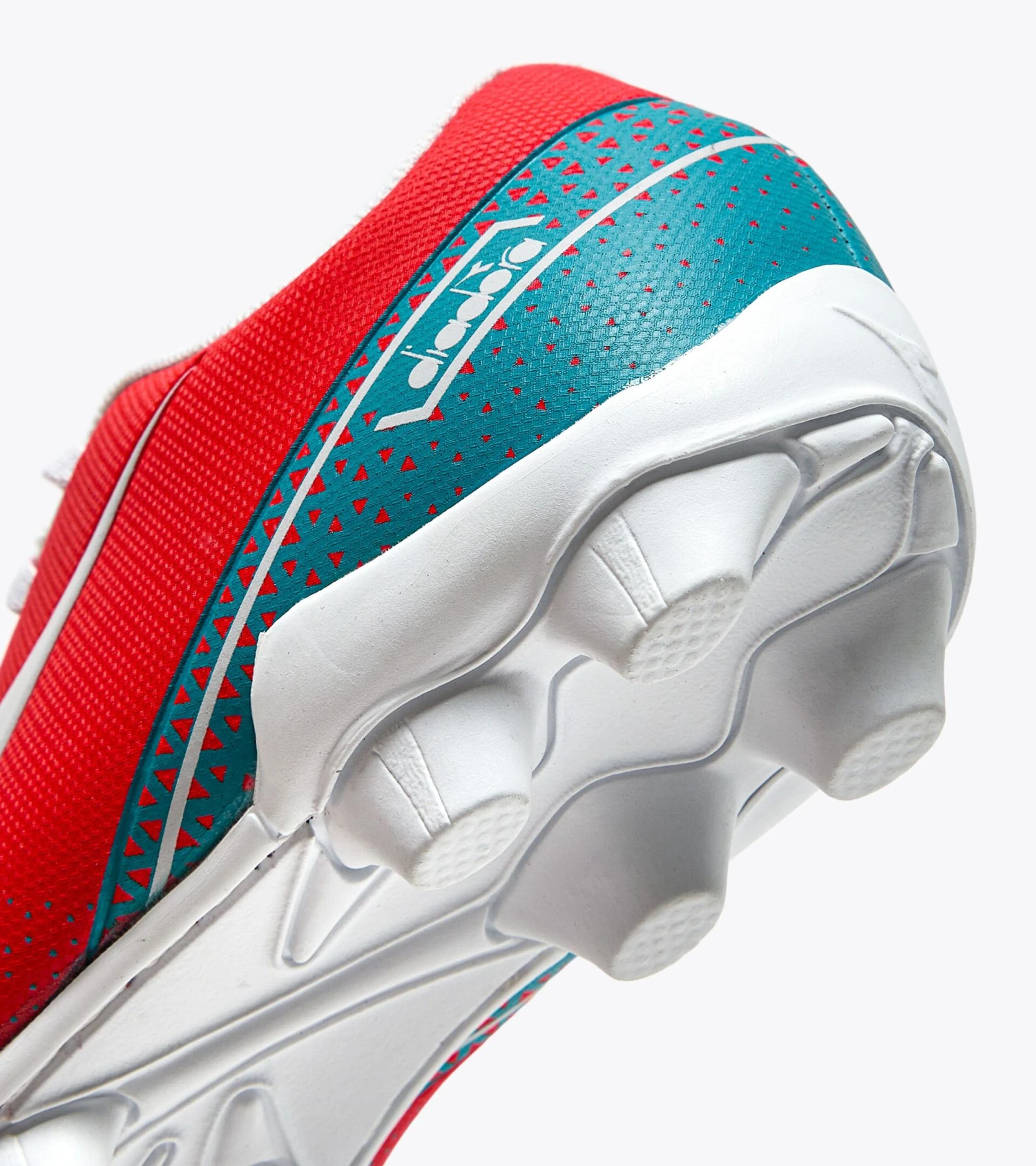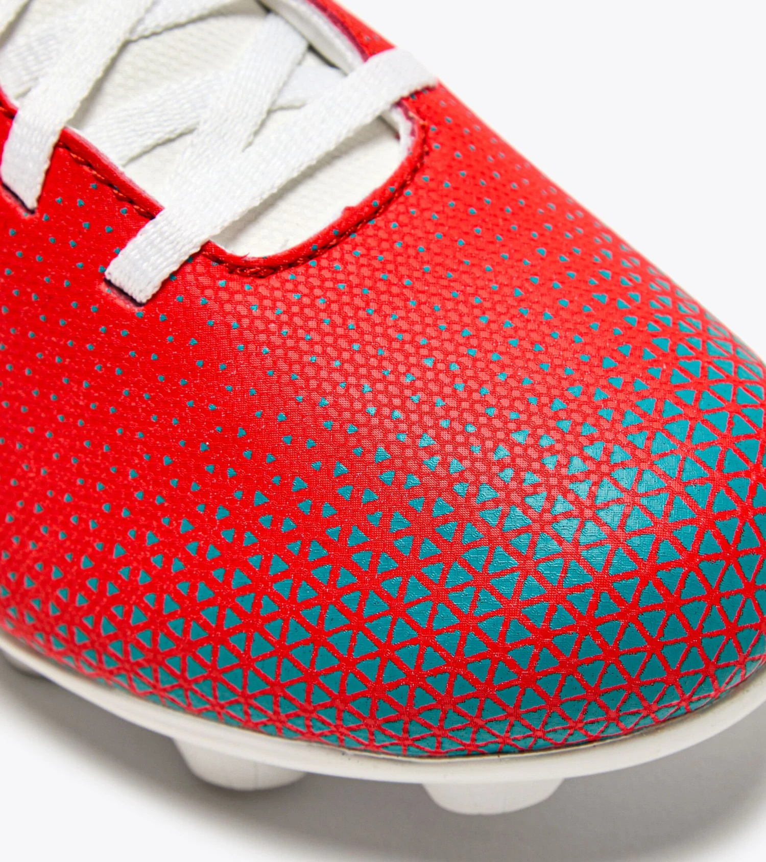The Pichichi 6 MR JR features a rubber sole with varying hardness and 14 fixed oval studs. The sole is seamlessly stitched to the upper at the front, making it an ideal choice for training on natural soils, and extremely hard or compact surfaces. Do not wait any longer–begin your journey in the world of calcio with Pichichi!
