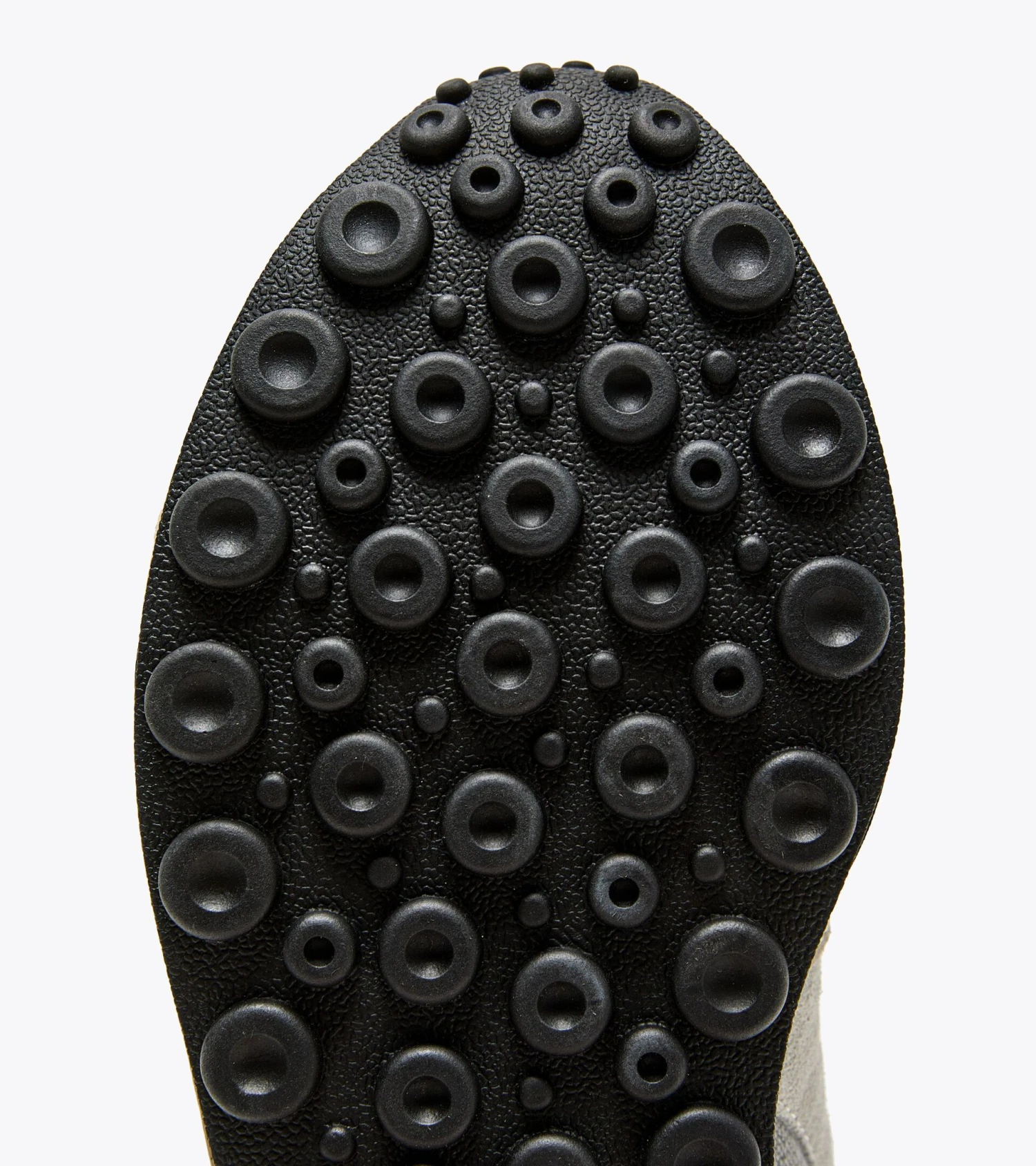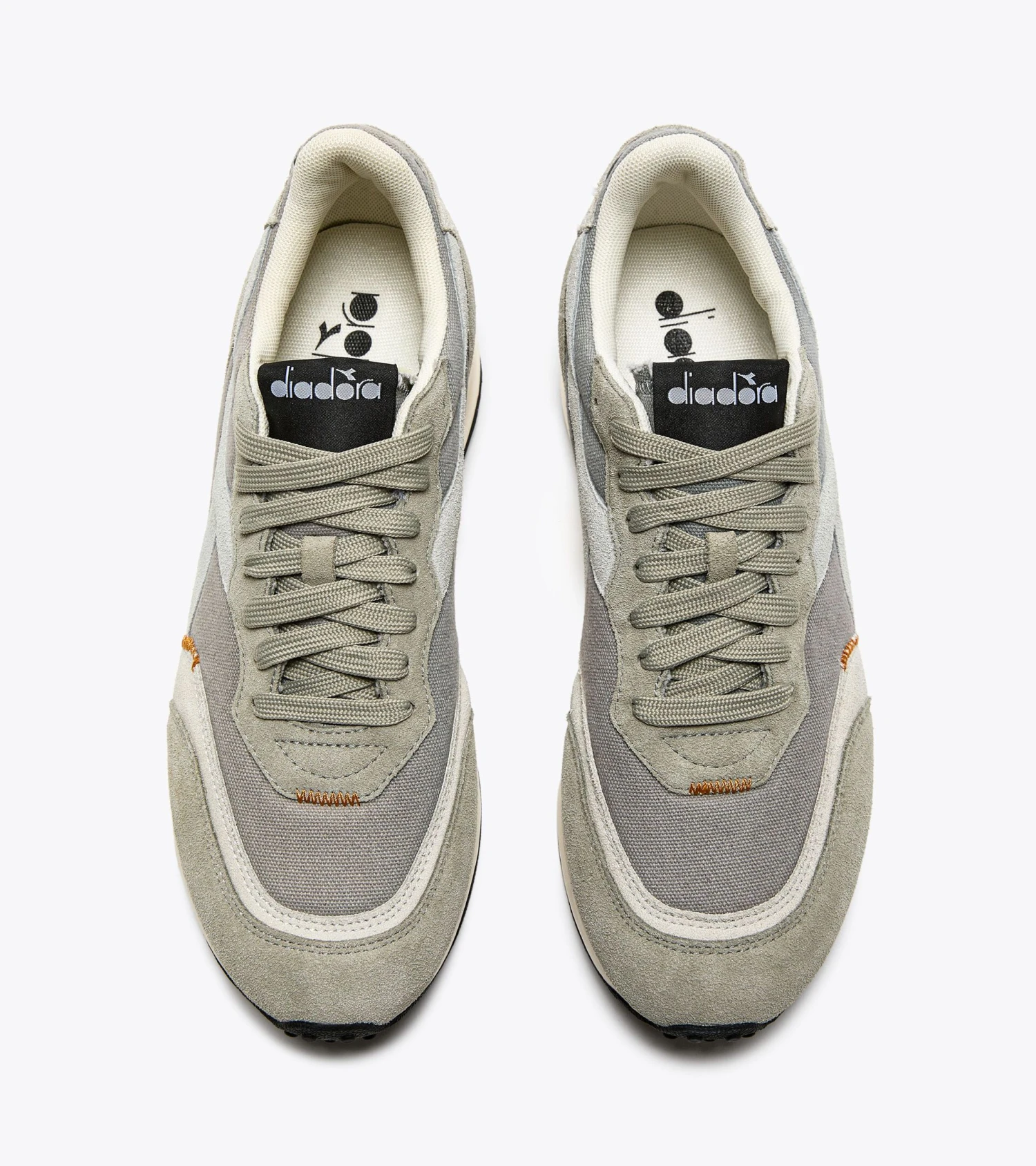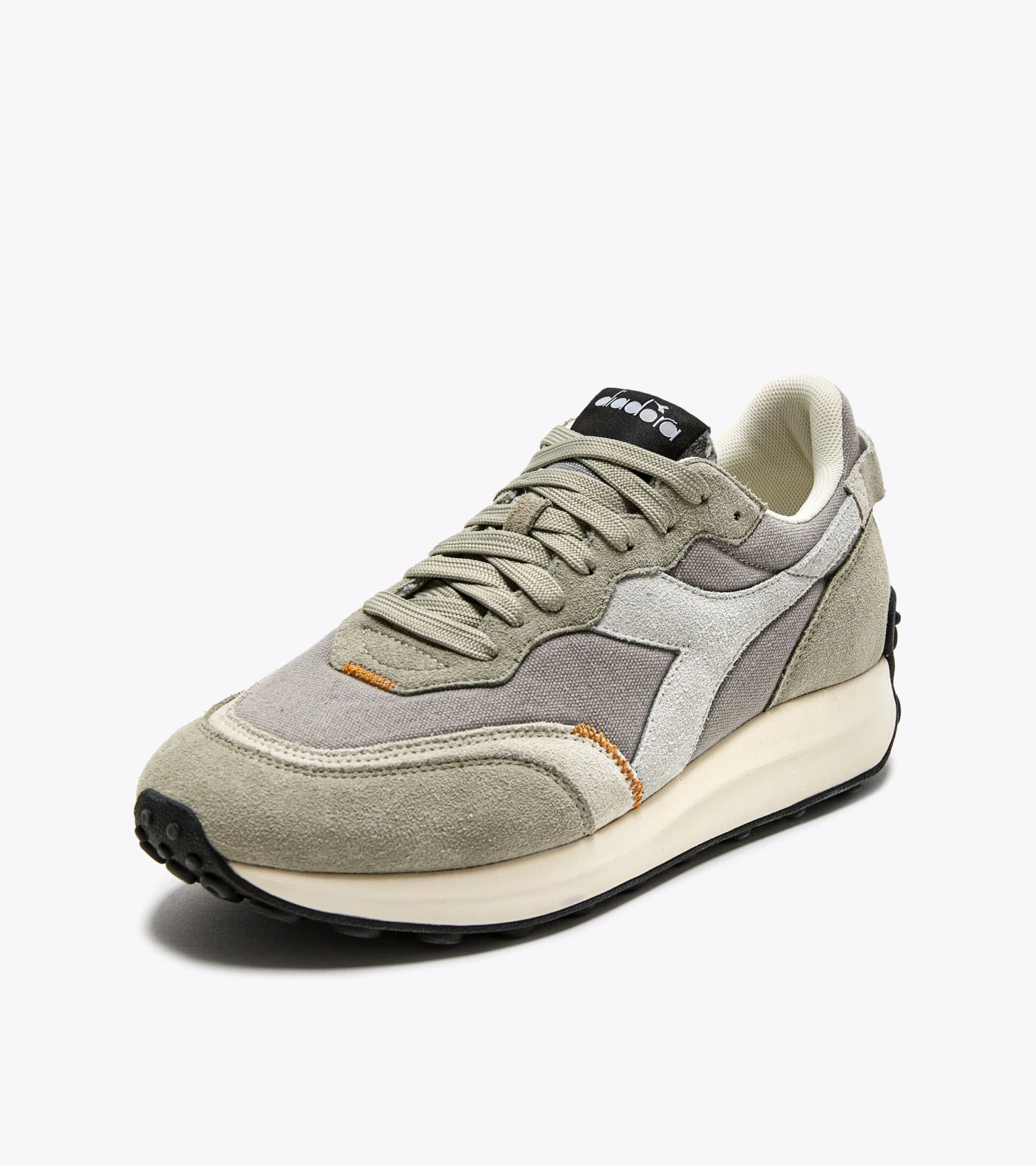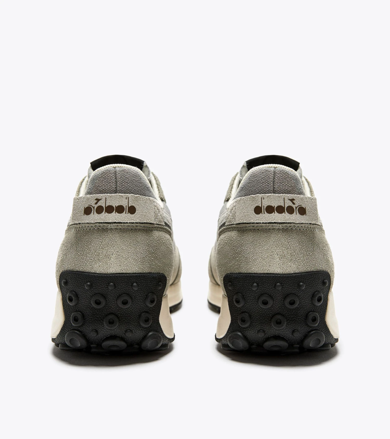 Race Suede SW, a classic running shoe from the 80s, makes a comeback to celebrate diadora’s sporting heritage. The sole faithfully replicates the original version, while the upper is revamped with a more contemporary style. The canvas on the quarter and vamp is finished with waxing, giving it a captivating worn effect.